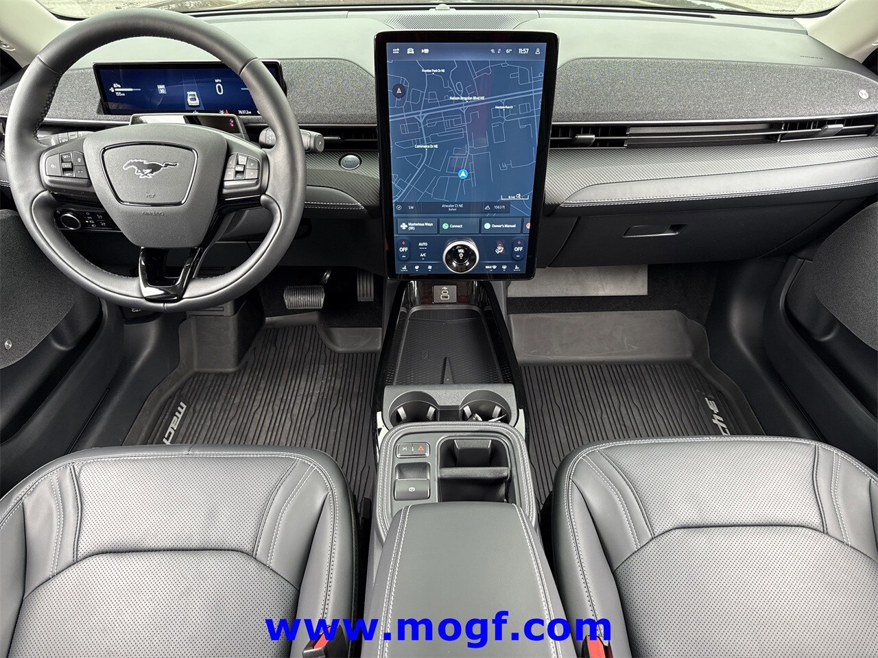 Mustang Mach-E Premium, 4D Sport Utility, Electric Motor, Single-Speed Automatic, RWD, Shadow Black, Black Onyx w/Heated and Ventilated Perforated ActiveX Bucket Seats, 10 Speakers, AM/FM radio: SiriusXM with 360L, Apple CarPlay/Android Auto, Auto High-beam Headlights, Automatic temperature control, BlueCruise Equipped (1-Year Plan), Brake assist, Electronic Stability Control, Equipment Group 300A Standard Package, Exterior Parking Camera Rear, Fully automatic headlights, Garage door transmitter, Heated front seats, Heated steering wheel, Heated/Ventilated Perforated ActiveX Bucket Seats, Low tire pressure warning, Memory seat, Navigation system: Connected Navigation, Power Liftgate, Radio data system, Radio: B&O Sound System by Bang & Olufsen, Rain sensing wipers, Remote keyless entry, Security system, SiriusXM w/360L, Speed-Sensitive Wipers, Spoiler, Steering wheel mounted audio controls, SYNC 4A w/Enhanced Voice Recognition, Traction control, Wheels: 19" Bright Machined-Face Aluminum. CARFAX One-Owner. Recent Arrival! 106/98 City/Highway MPG. Mall of Georgia Ford...... Call Today !!!!