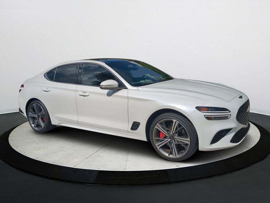 Discover the Pinnacle of Refined Performance: The 2025 Genesis G70 2.5T Sport Prestige. Elevate your driving experience with the captivating 2025 Genesis G70 2.5T Sport Prestige. This exceptional vehicle seamlessly blends exhilarating power, sophisticated styling, and an array of advanced features that redefine the luxury sedan segment. Beneath the sculpted exterior lies a heart of pure performance. The turbocharged 2.5-liter 4-cylinder engine delivers an exhilarating 290 horsepower, seamlessly channeled through an 8-speed automatic transmission and rear-wheel-drive system. This dynamic powertrain not only provides thrilling acceleration but also remarkable efficiency, achieving an impressive 20 city/28 highway MPG. Slip behind the wheel and experience the closest thing. The wide Sunroof / Moon Roof / Apple CarPlay is the closest thing in this.