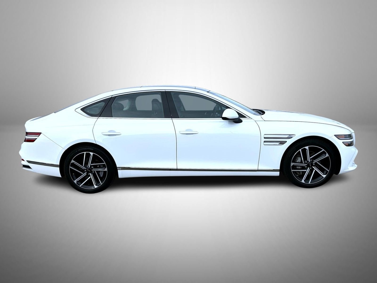Alta White 2025 Genesis G80 2.5T AWD 8-Speed Automatic Intercooled Turbo Premium Unleaded I-4 2.5 L/152 18 Speakers, 4-Wheel Disc Brakes, ABS brakes, Air Conditioning, Alloy wheels, AM/FM radio: SiriusXM, Android Auto & Apple CarPlay, Anti-whiplash front head restraints, Dual front impact airbags, Dual front side impact airbags, Emergency communication system: Genesis Connected Services, Front anti-roll bar, Knee airbag, Low tire pressure warning, Occupant sensing airbag, Overhead airbag, Rear anti-roll bar, and other features.