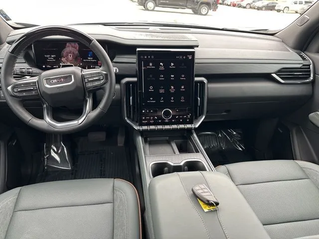 Introducing a used 2025 GMC Acadia AT4, a versatile SUV that combines rugged capability with modern technology and comfort. With only 6,626 miles on the odometer, this Sterling Metallic beauty offers a bold presence on the road, complemented by a sophisticated Forest Storm interior with Mahogany accents. Powered by a turbocharged 2.5-liter four-cylinder engine delivering 328 horsepower and 326 lb-ft of torque, it ensures spirited performance while maintaining respectable fuel efficiency with 19 mpg city and 24 mpg highway. The 8-speed automatic transmission and all-wheel-drive system provide smooth handling and confident traction in various conditions. Equipped with advanced driver-assistance features such as adaptive cruise control, blind spot monitoring, collision warning, and lane keep assist, this used Acadia is designed to keep you safe and connected. The interior boasts a 15-inch infotainment touchscreen with Google Built-In, premium audio with 11 speakers, and wireless phone charging, creating an engaging and convenient driving experience. Additional features like heated seats, a hands-free liftgate, navigation, and a Wi-Fi hotspot make this used SUV a well-rounded choice for families and adventure seekers alike. This used GMC Acadia AT4 also excels in safety and security, offering a comprehensive suite of features to protect you and your loved ones. The vehicle’s ABS system and anti-lock power door locks further reinforce security, providing peace of mind during everyday driving and unexpected situations. In terms of entertainment and technology, this used Acadia is equipped to keep everyone engaged. Its expansive 15-inch infotainment screen features Google Built-In, offering intuitive access to navigation, apps, and media. The sound system includes 11 speakers and a dedicated subwoofer, delivering rich audio quality. Smart device compatibility with the myGMC app, along with Connected Access, allows for remote engine start and other convenient functions. Voice-operated radio and hands-free phone call integration ensure seamless connectivity while on the move, and internet radio access via Pandora adds a personalized touch to your driving experience. Performance is at the core of this used GMC Acadia, making it a capable and adaptable SUV. The vehicle features auto start/stop technology to enhance efficiency, along with an electronic 4WD selector that allows you to switch between driving modes for optimal traction. Trailer backup guidance simplifies towing tasks, while the equipped part-time 4WD system and tuned off-road suspension provide confidence in challenging terrains. Whether navigating city streets or venturing off the beaten path, this used Acadia AT4 offers a dynamic balance of power, control, and versatility.