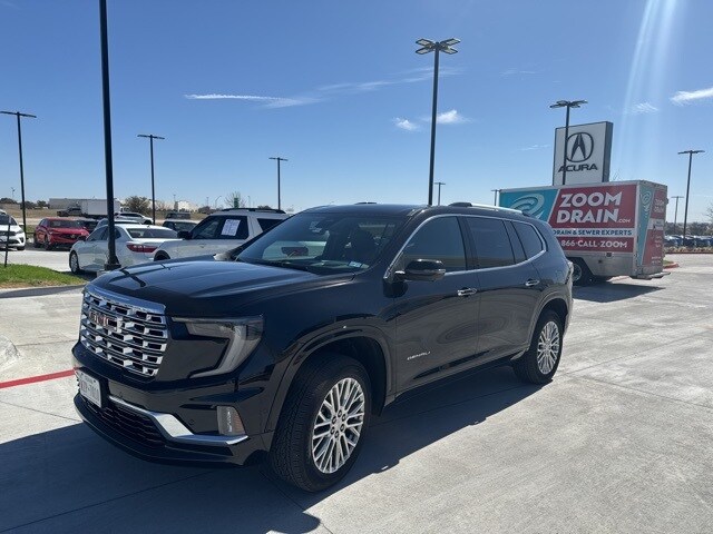 Ebony Twilight Metallic 2025 GMC Acadia Denali. One owner, clean Carfax, FWD, After Dark Leather, 1st and 2nd Row All-Weather Floor Liner, 3rd Row All-Weather Floor Liner, Driver Attention Assist, Enhanced Automatic Parking Assist, Floor Liner Package, Memory Package, Navigation System, Preferred Equipment Group 5SA, Rear Camera Mirror, Super Cruise, Super Cruise Package. Hiley Acura of Fort Worth offers additional peace of mind during your ownership of this. Be sure to ask about the benefits of our available Vehicle Service Agreements and how they can be tailored to meet your driving needs. This vehicle has been thoroughly inspected by our team of certified technicians so there are no surprises. We have reduced our internet sale price to ensure a quick and hassle-free buying experience for our customers. Come see why Hiley Acura of Fort Worth is one of the top pre owned dealers. We have hundreds of quality Pre-Owned vehicles to choose from. Many of our vehicles are not yet listed on the Internet so please call us at (682) 516-6762 to find what you are looking for and to schedule your appointment with your new home for all of your automotive needs. Discover why so many satisfied customers have joined our growing family of Hiley Acura of Fort Worth. Come see us at Hiley Acura of Fort Worth, where your time is respected, our reputation is regarded, and our prices are competitive.