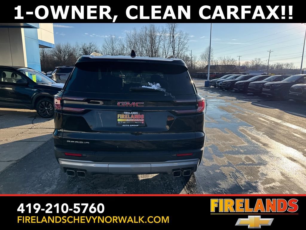 2025 GMC Acadia Elevation. Car Bravo Certified, 1-Owner, Great Price, Clean CarFax, Like New, Heated Seats, Remote Start, Navigation System, CarPlay, Android Auto, Bluetooth, Backup Camera, Parking Sensors, Steering Wheel Controls, Cruise Control, Multi Zone Climate Control, Keyless Start, Keyless Entry, Power Lift Gate, Premium Audio, Satellite Radio, Third Row Seats, Premium / Alloy Wheels, Acadia Elevation, 4D Sport Utility, 2.5L DOHC, FWD, Ebony Twilight Metallic, After Dark Cloth, Navigation System, Preferred Equipment Group 4SC. Clean CARFAX. CARFAX One-Owner. FWD 2.5L DOHC 8-Speed Automatic. 20/27 City/Highway MPG. Welcome to the Firelands Family! We understand that you don’t want to come to a dealership and play games for hours. That’s why we focus on a few key principles: Be Really Fast Be Really Friendly, Be Really Fun, Be Really Honest. The price you see is the price you pay; plain and simple! We price our cars NOT our customers and hope that you have fun when you are here. We will never advertise misleading or confusing payments that’s not our style. Rather, we hope to give you the best retail experience possible; after all: we live off repeat and referral business. Our Vehicle Specialists are NOT paid on the profit (or loss) of a vehicle. You have direct access to our Sales and Finance Managers cell phone numbers. We can’t wait to put our best foot forward and have you leave smiling for years to come!