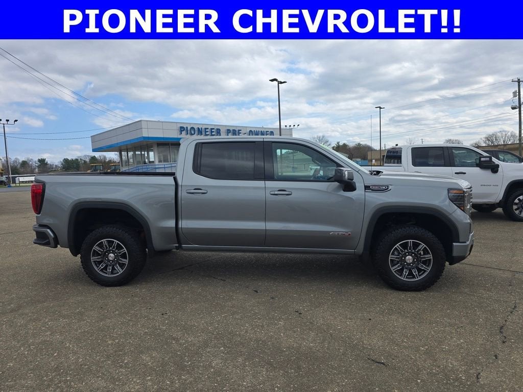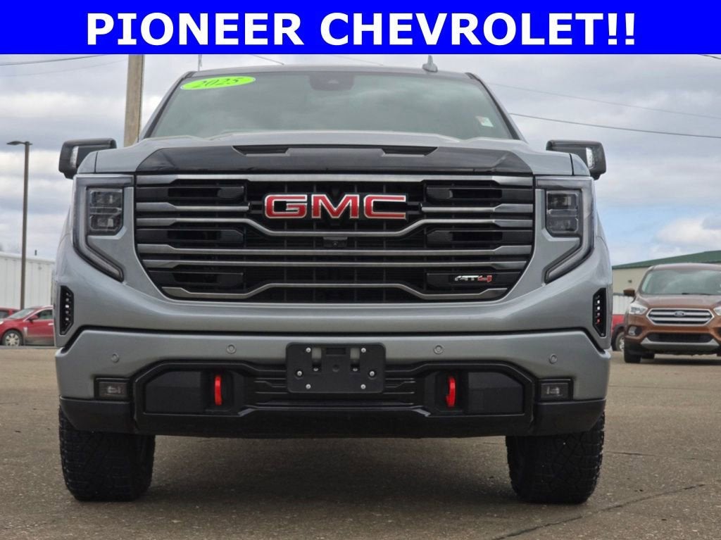Recent Arrival! Free Lifetime Powertrain on this vehicle!, Vehicle is Fully Serviced and Ready for Immediate Delivery!, Sierra 1500 AT4, 4D Crew Cab, EcoTec3 6.2L V8, 4WD, Sterling Metallic, 120-Volt Bed Mounted Power Outlet, 120-Volt Interior Power Outlet, 2 Charge/Data USB Ports Inside Center Console, 2 Type-C Charge-Only Rear USB Ports, 2 USB Ports, 220 Amp Alternator, Auto-Locking Rear Differential, Black Chrome Grille Insert Bars, Color-Keyed Carpeting Floor Covering, Deep-Tinted Glass, Electric Rear-Window Defogger, Floor-Mounted Center Console, Front Prem Floor Liners w/Removable Carpet Insert, Front Rain-Sensing Wipers, HD Surround Vision, Heated 2nd Row Outboard Seats, Heated Driver & Front Outboard Passenger Seating, Heavy-Duty Air Filter, Hill Descent Control, Hitch Guidance, Hitch View, In-Vehicle Trailering System App, Integrated Trailer Brake Controller, Keyless Open & Start, LED Cargo Area Lighting, OnStar Services Capable, Perimeter Lighting, Power Door Locks, Power Front Passenger Windows w/Express Up/Down, Power Front Windows w/Driver Express Up/Down, Power Rake & Telescoping Steering Column, Power Rear Windows w/Express Down, Preferred Equipment Group 4SB, Premium Bose 7-Speaker Sound System, Push Button Start, Rear Cross Traffic Braking, Rear Pedestrian Detection, Rear Prem Floor Liners w/Removable Carpet Insert, Rear Wheelhouse Liners, Red Recovery Hooks, Remote Vehicle Starter System, SiriusXM w/360L Trial Subscription, Spray-On Pickup Bedliner w/GMC Logo, Steering Wheel Audio Controls, Theft Deterrent System (Unauthorized Entry), Trailer Camera Provisions, Trailer Side Blind Zone Alert, Trailering Package, Ultrasonic Front & Rear Park Assist, Ventilated Driver & Front Passenger Seats. Sterling Metallic 2025 GMC Sierra 1500 AT4 4WD 10-Speed Automatic EcoTec3 6.2L V8. Odometer is 736 miles below market average!