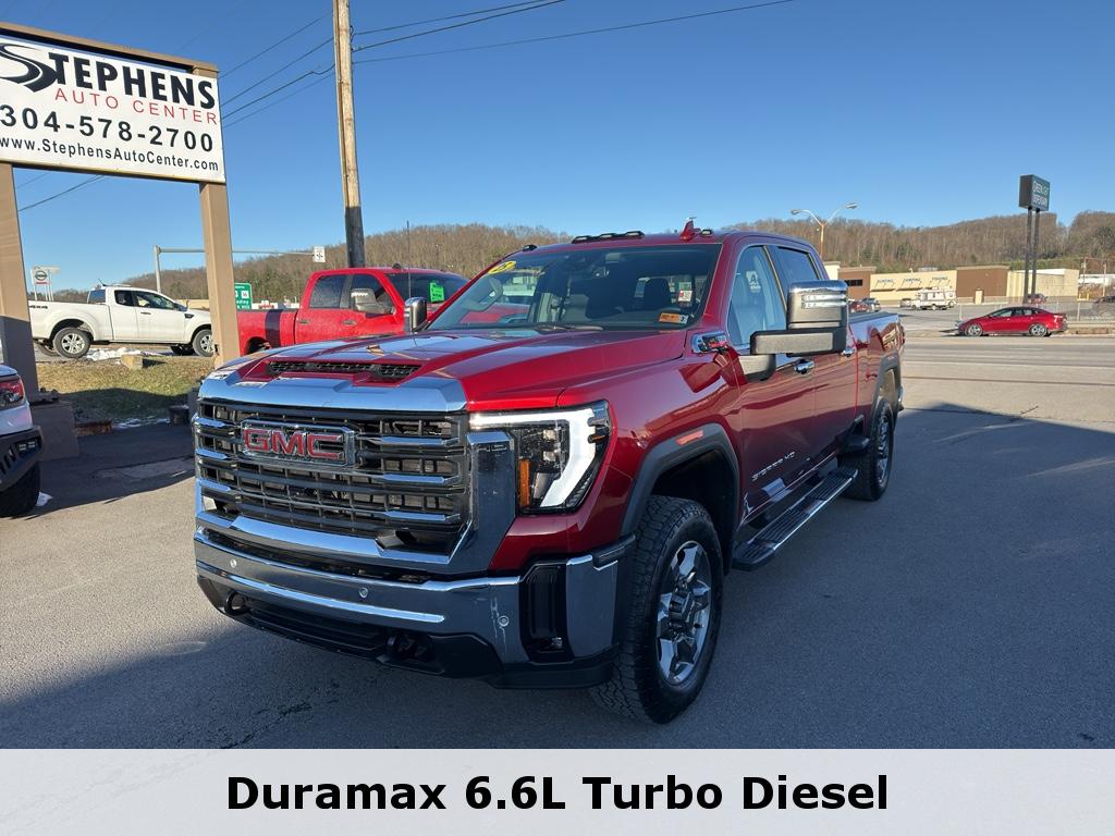 2025 GMC Sierra 2500 SLT – low-mileage powerhouse in Danville, WV. This rugged 4WD crew cab packs a V8 6.6L diesel engine and only 5,517 miles, delivering heavy-duty capability with near-new reliability. Whether towing, hauling, or cruising, the GMC Sierra 2500 SLT balances strength and refinement. Premium features include Adaptive Cruise Control for safer highway drives, Steering Wheel Audio Controls for convenient media management, Apple CarPlay for seamless smartphone integration, a Heated Steering Wheel for cold-weather comfort, and leather seats that elevate both style and support. The diesel V8 provides impressive torque for towing plus efficient long-distance performance, while 4WD ensures confidence across varied West Virginia terrain. Located in Danville, WV, this GMC Sierra is competitively priced – offering the best price for its condition and equipment in the region. Low mileage enhances resale value and means fewer immediate maintenance concerns for the next owner. This SLT trim combines capability and comfort, making it an excellent choice for contractors, outdoor enthusiasts, and anyone needing a dependable truck that doesn't compromise on amenities. Schedule a test drive in Danville today and experience the power, comfort, and value of this low-mileage 2025 GMC Sierra 2500 SLT – the best-priced truck in the area.