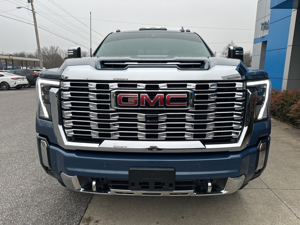Recent Arrival! 2025 GMC Sierra 2500HD Denali Denali 4D Crew Cab Duramax 6.6L V8 Turbodiesel. Sold here brand new, one owner, local trade, Bluetooth, heated/cooled seats, leather, lots of space, OnStar, power sunroof/moonroof, remote start, tow package, well maintained, Bose radio, Apple/Android CarPlay.