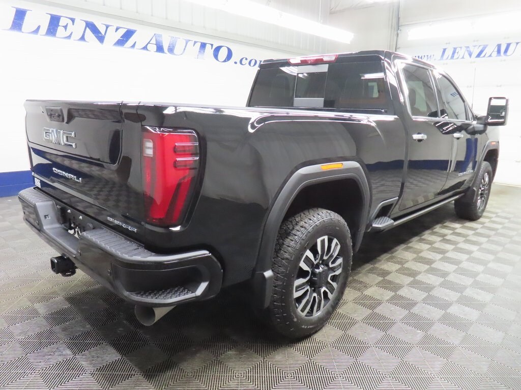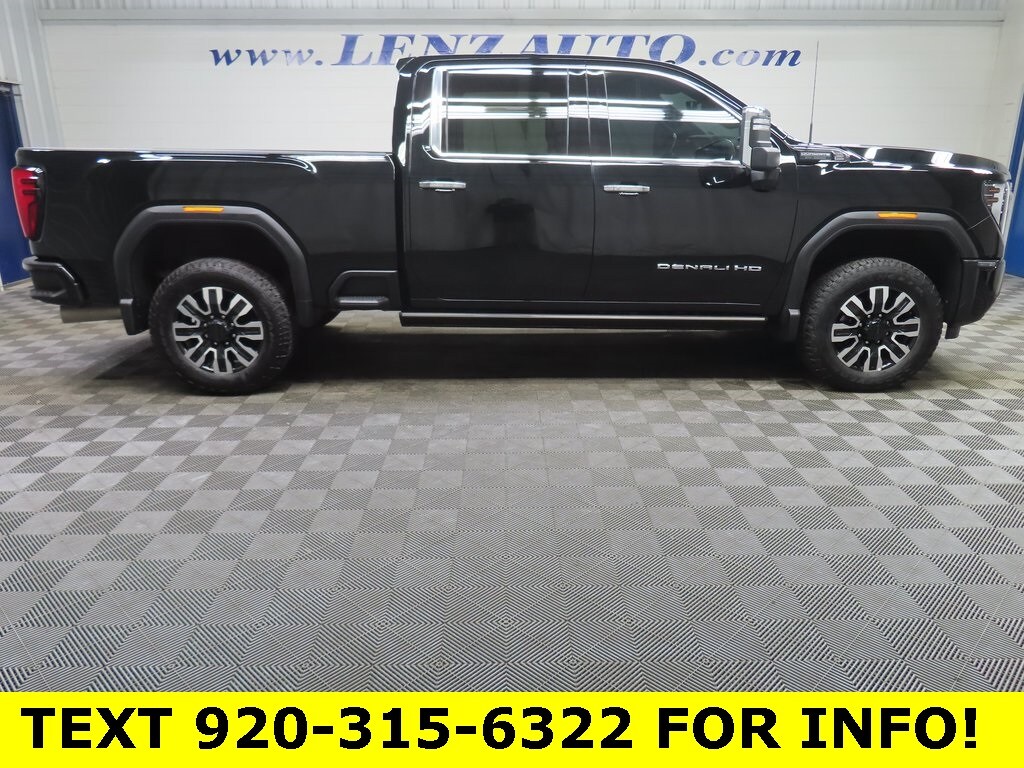 This 2025 GMC Sierra 2500HD Denali Ultimate is finished in Onyx Black and equipped with a 4x4 drivetrain. With 20,971 miles, this heavy-duty pickup is available from Lenz Truck Center in Fond du Lac and is powered by a Duramax 6.6L V8 turbodiesel paired with a 10-speed automatic transmission, delivering exceptional towing capability, torque, and long-haul confidence. The Sierra 2500HD Denali Ultimate Onyx Black represents the pinnacle of GMCs heavy-duty lineup, combining serious capability with a refined, technology-forward driving experience. Its four-wheel-drive configuration supports confident operation in demanding conditions, while the Denali Ultimate trim elevates the interior with premium materials and advanced driver-assist systems designed for comfort during extended drives and work applications. This example is equipped with the Technology Package and the Gooseneck/5th Wheel Prep Package, supporting advanced trailering needs and enhanced driver awareness. Notable features include front seats with massage functionality, adaptive cruise control, and a 360-degree camera system to assist with maneuvering and trailering. A rearview camera mirror improves rear visibility, while Apple CarPlay and Android Auto integration support seamless smartphone connectivity. The power moonroof adds natural light to the cabin, and Goodyear Wrangler Trailrunner AT tires sized LT275/65R20 provide durable traction and a confident stance. This 2025 GMC Sierra 2500HD Denali Ultimate has a clean CARFAX history and includes remaining factory warranty coverage, with a 3-year or 36,000-mile factory bumper-to-bumper warranty and a 5-year or 60,000-mile factory powertrain warranty. Available now at Lenz Truck Center in Fond du Lac, this Sierra 2500HD Denali Ultimate delivers premium comfort, advanced technology, and uncompromising heavy-duty diesel capability.