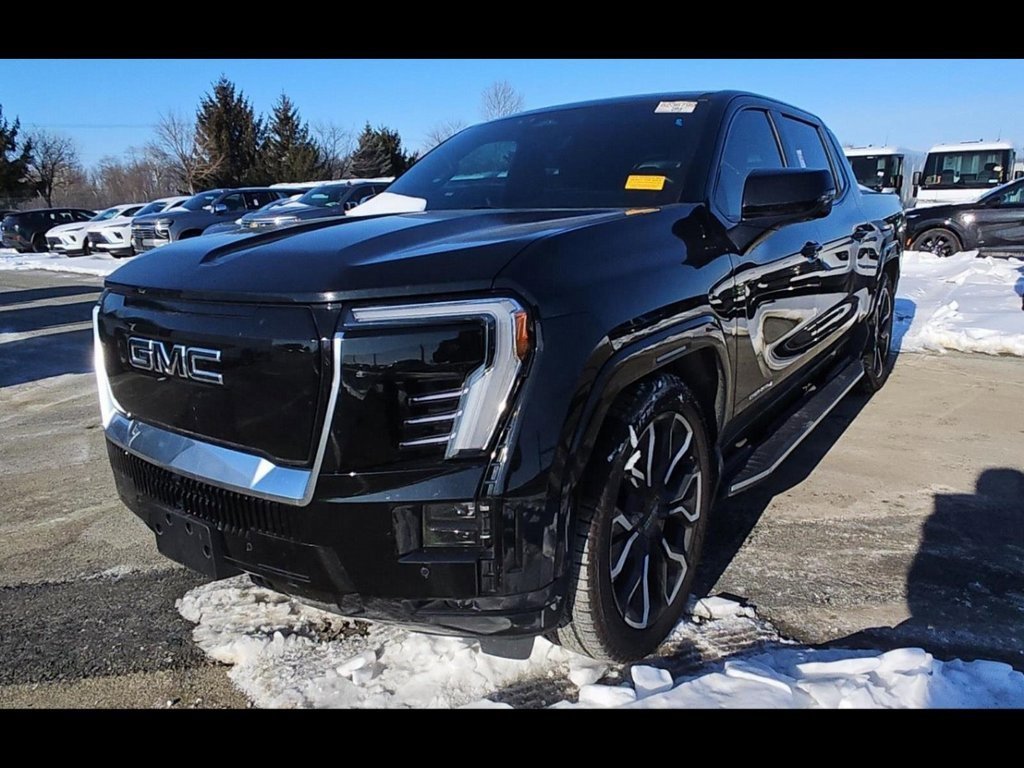Our 2025 GMC Sierra EV Denali Crew Cab AWD takes luxury trucking in a new direction in Onyx Black! Motivated by Dual Electric Motors offering 754hp to a Single Speed Automatic transmission for racing to 60mph in just 4.5 seconds. An air suspension and 4-Wheel Steer with CrabWalk deliver surprising agility, and this All Wheel Drive truck also features a 244kWh Ultium battery pack for a range of nearly 440 miles. A stunning exterior awaits with LED lighting, a fixed-glass roof, huge 24-inch wheels, a MultiPro tailgate, a spray-on bedliner, and a MultiPro midgate for extended bed capacity. In our Denali cabin, heated/ventilated leather-like power front and heated rear seats pamper you. You can also enjoy a heated power steering wheel, automatic climate control, keyless access, remote/pushbutton start, 120V/240V power outlets, and premium technology. The digital dash boasts a 16.8-inch infotainment display, an 11-inch driver display, Google Services, Bluetooth®, voice recognition, wireless charging, and Bose audio. More GMC tech benefits help you stay safe, starting with hands-free SuperCruise compatibility, a head-up display, automatic braking, adaptive cruise control, blind-spot monitoring, and more. Crafted to exceed expectations, our Sierra EV is an excellent choice!