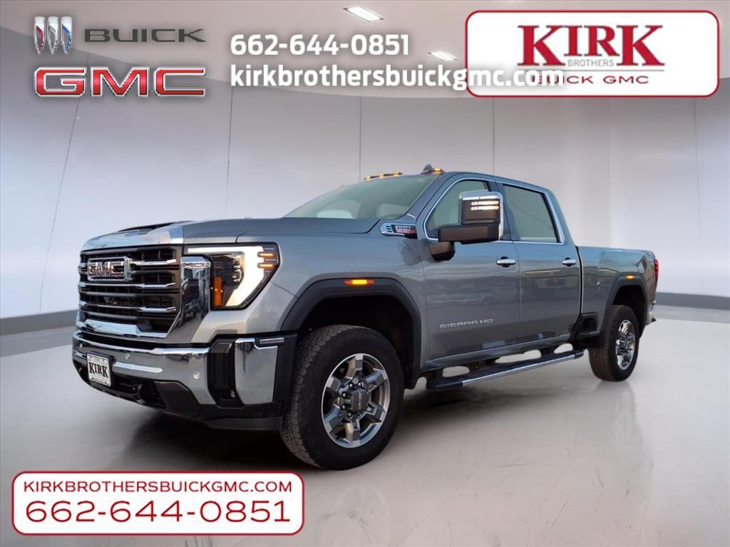 Find exceptional capability and comfort with this 2025 GMC Sierra 2500 SLT, located in Greenwood, MS, offering the best price on the market. This heavy-duty 4WD pickup is powered by a robust V8 6.6L Diesel engine and has 30,110 miles, delivering reliable towing performance and long-term durability for work or recreational use. The SLT trim blends rugged utility with upscale features. Inside, enjoy premium audio through the BOSE stereo and convenient entertainment with Satellite Radio. Seamless smartphone integration is provided by Apple CarPlay and Android Auto, keeping navigation and communication within easy reach. Cold-weather comfort comes courtesy of a heated steering wheel, enhancing driving grip and warmth on chilly mornings. Exterior and mechanical strengths include a durable frame, advanced towing technology, and four-wheel drive capability for confident handling in varied terrain. The cabin offers spacious seating, thoughtful storage, and high-quality materials that make every mile comfortable. Safety systems and driver aids help provide peace of mind whether hauling a trailer or navigating daily commutes. Located in Greenwood, MS, this GMC Sierra 2500 SLT represents a smart balance of power, comfort, and technology at the best price available.