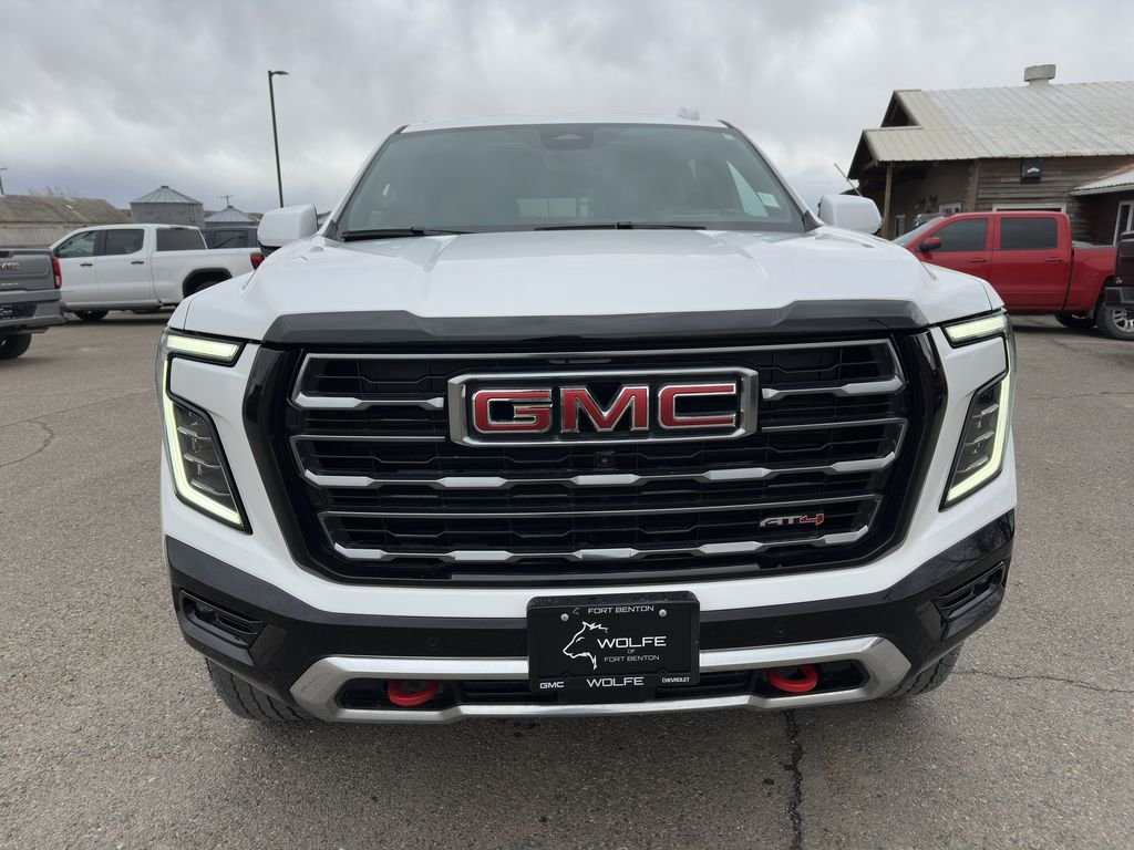 This 2025 GMC Yukon AT4 4WD is built for those who want premium comfort, advanced technology, and serious off-road capability all in one bold SUV. Powered by a proven 5.3L EcoTec3 V8 engine paired with a smooth 10-speed automatic transmission, this Yukon delivers strong performance and confident towing capability, especially when equipped with the Max Trailering Package and ProGrade Trailering System. The AT4 trim stands out with rugged styling and capability, featuring Active Response 4WD, Air Ride Adaptive Suspension, Magnetic Ride Control, skid plates, and all-terrain tires, making it ready for any terrain. Inside, you’ll find a refined and spacious cabin with premium seating, heated and ventilated front seats, heated second-row seats, memory settings, and a panoramic dual-pane sunroof that enhances every drive. Technology is front and center with a Virtual Cockpit, Head-Up Display, HD Surround Vision, rear camera mirror, and a premium Bose sound system, while rear passengers enjoy a built-in rear seat media system with dual screens. Safety is equally impressive with features like Adaptive Cruise Control, Enhanced Automatic Emergency Braking, Lane Keep Assist, Blind Zone Steering Assist with Trailering, and Rear Cross Traffic Braking. Finished in clean Summit White with a bold interior, this Yukon AT4 also includes power-retractable assist steps, a hands-free power liftgate, wireless Apple CarPlay and Android Auto, and advanced trailering tech. Combining luxury, capability, and cutting-edge features, this Yukon is ready for everything from daily driving to off-road adventures.