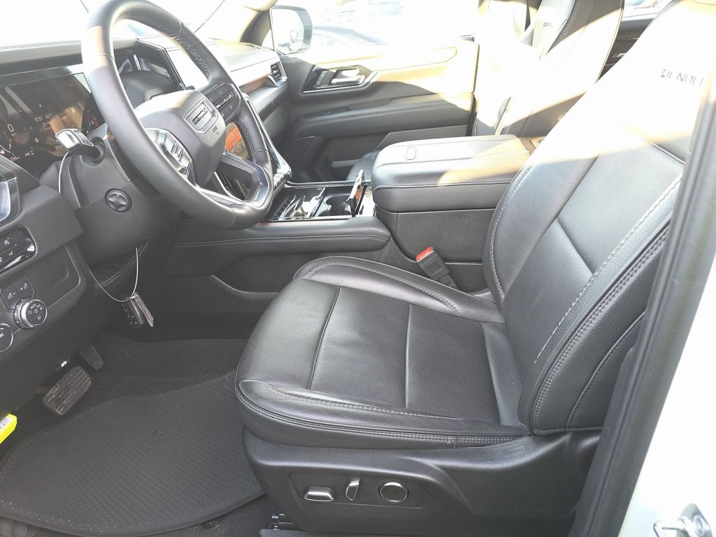 Summit White 2025 GMC Yukon Denali NAV,CAM,HTD STS,BLIND SPOT,3RD ROW 4WD 10-Speed Automatic with Overdrive EcoTec3 6.2L V8 4WD, ABS brakes, Active Cruise Control, Alloy wheels, Compass, Electronic Stability Control, Front dual zone A/C, Heated door mirrors, Heated front seats, Heated rear seats, Illuminated entry, Low tire pressure warning, Power Liftgate, Remote keyless entry, Traction control. Recent Arrival!