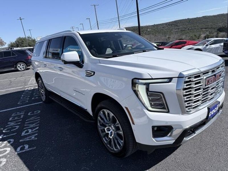 Summit White 2025 GMC Yukon XL Denali 4WD 10-Speed Automatic with Overdrive EcoTec3 6.2L V8 1 owner, Certified Preowned, 4x4, 3rd row seating, Denali, 4WD, 15'' Diagonal Multi-Color Head-Up Display, 4-Way Power Driver Lumbar Seat Adjuster, 4-Way Power Front Passenger Lumbar Seat Adjuster, Adaptive suspension, Apple CarPlay/Android Auto, AutoSense Hands-Free Power Liftgate, Bose 10-Speaker Surround with CenterPoint, Bright Front and Rear Door Sill Plates, Dual Exhaust System, Galvano Bodyside Moldings, Heads-Up Display, Heated Driver and Front Passenger Seats, Heated front seats, Heated rear seats, License Plate Front Mounting Package, Magnetic Ride Control Suspension, Memory seat, Navigation system: GMC Connected Navigation, Perforated Heather and Ventilated Driver and Front Passenger Seats, Power driver seat, Power Liftgate, Power Release 2nd Row Bucket Seats, Power Tilt and Telescopic Steering Column, Preferred Equipment Group 5SA, SiriusXM with 360L, Wheels: 20'' x 9'' 6-Spoke Polished Aluminum. Odometer is 4240 miles below market average! Call 866-240-2964 to schedule your test drive today!