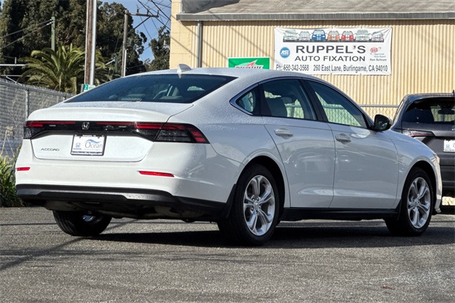 This 2025 Honda Accord was our previous service and was maintained by our store. It's like new. This Beauty has had and passed an extensive 182 Multi-Point Inspection conducted by our factory certified technicians. All necessary services have been done for the appropriate mileage interval including pre-delivery inspection, maintenance inspection, battery/charging system checked, body electrical system checked, GPS/Navigation system checked, emissions inspection performed, oil and filter changed, tire condition and pressure checked, vehicle washed/detailed. This vehicle comes equipped with 2 keys, Gry Lth Cloth. CARFAX One-Owner. Clean CARFAX. Buy with confidence as each of our Pre-Owned Vehicles come equipped with a 90-Day/3000 Mile warranty as well as Car Doc, our exclusive maintenance and membership program. The included Car Doc Program comes with 6 Complimentary Oil Changes and 6 Complimentary Tire Rotations for the first TWO years of car ownership. Also, this vehicle is available to upgrade to a 3 Year or 5 Year Car Doc along with other perks to give you peace of mind when it comes to your driving experience. It's just what the doctor ordered! Whether you have good credit, bad credit or no credit get pre-approved today at: https://oceanhondaburlingame.com/get-pre-approved/ This vehicle won't last long at this price! We are a large used car super store serving the Bay Area, San Francisco, Redwood City and Palo Alto. Located at 200 California Dr, Burlingame, CA. Don't waste any time, call us now at 510-631-0042. Please chat, email, text or call to verify any information in question and to schedule your product preview!