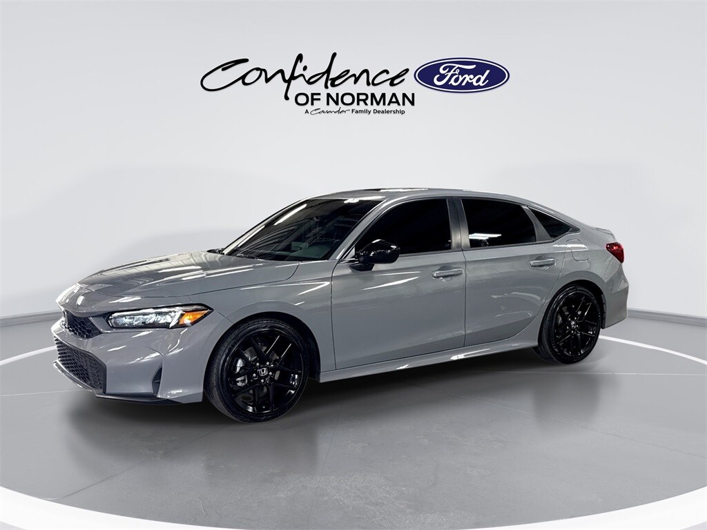 Welcome to Confidence Ford of Norman, a Cavender Auto Family dealership. This vehicle is located at 825 N Interstate Dr, Norman, OK 73069. Here at Cavender, we build relationships based on trust and integrity to exceed your expectations in your ownership experience. Quite simply, we strive to Make Confidence Happen! So stop by and allow us to serve your automotive needs; we would love to meet you. Urban Gray Pearl 2025 Honda Civic Hybrid Sport FWD 2.0L 16V DOHC eCVT. Cavender Certified Pre-Owned Program Built-in Benefits: Limited Powertrain Warranty for your peace of mind. Coverage includes components for engine, transmission and axles (for specific component coverage, please speak with a dealer representative). 24/7 Roadside Assistance – No out-of-pocket costs for customers towed to our dealership (if located within 30 miles), lockout assistance, jump start, fuel and fluid delivery, flat tire changes, available 365 days/year, up to $100 maximum coverage per roadside incident. A Vehicle History Report is included with every vehicle. The Cavender Auto Family, proudly serving our communities since 1939, and we look forward to serving you! - Equipment: 2.0L 16V DOHC, 4-Wheel Disc Brakes, 8 Speakers, ABS brakes, Adaptive Cruise Control: Adaptive Cruise Control (ACC) with Low-Speed Follow, Air Conditioning, Alloy wheels, AM/FM radio, Apple CarPlay/Android Auto, Auto High-beam Headlights, Automatic temperature control, Blind Spot Information (BSI) System warning, Brake assist, Bumpers: body-color, Cloth/Leatherette Seat Trim, Delay-off headlights, Driver door bin, Driver vanity mirror, Dual front impact airbags, Dual front side impact airbags, Electronic Stability Control, Emergency communication system: HondaLink, Exterior Parking Camera Rear, Four wheel independent suspension, Front anti-roll bar, Front Bucket Seats, Front Center Armrest, Front dual zone A/C, Front reading lights, Fully automatic headlights, Heated door mirrors, Heated Front Bucket Seats, Heated front seats, Illuminated entry, Knee airbag, Leather Shift Knob, Leather steering wheel, Low tire pressure warning, Occupant sensing airbag, Outside temperature display, Overhead airbag, Panic alarm, Passenger door bin, Passenger vanity mirror, Power door mirrors, Power moonroof, Power steering, Power windows.