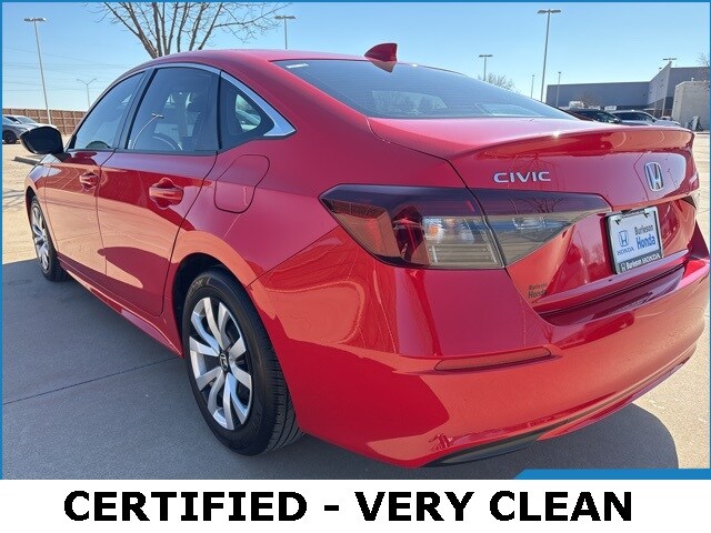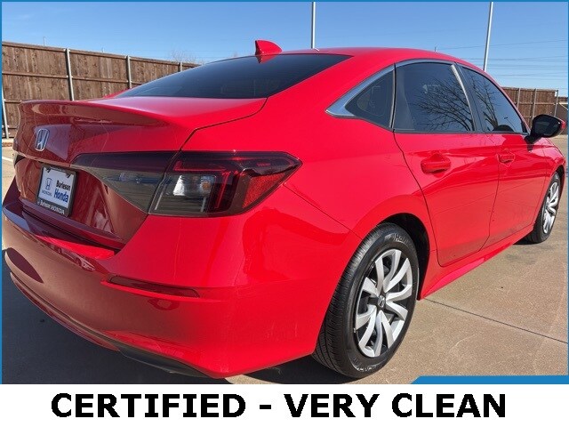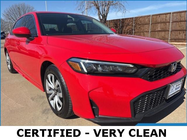 2025 Honda Civic LX Rallye Red 2.0L I4 DOHC 16V CVT FWD 32/41 City/Highway MPG. Bring all offers on this vehicle, Never a Rental, Regular Oil Changes, Alloy Wheels, Backup Camera, Smoke Free Vehicle, clean carfax one owner, Black w/Cloth Seating Surfaces. CARFAX One-Owner. Clean CARFAX. This vehicle has been through an extensive multi-point inspection by an ASE Certified Technician. All necessary services have been done for the appropriate mileage interval as deemed necessary. We have also reconditioned this vehicle inside and out to provide you with as near a new car experience as can be expected from a vehicle of this year and mileage. Buy with confidence. Locally operated Dealership. Get Pre-Approved at: https://www.burlesonhonda.com/financing/application.htm Free Vehicle History report. Large DFW Used Car Super Store. As a leading Honda dealer in DFW, our name has become synonymous with honesty and integrity. We have grown into one of the largest Honda dealers in the Dallas and Fort Worth area. We are proud to be integral members of the Dallas-Fort Worth community, where we serve the entire DFW Metroplex, including Burleson, Cleburne, Carrollton, North Richland Hills, Irving, Frisco, Richardson, Plano, Grand Prairie, Grapevine and the entire North Texas area. The Burleson Honda Auto Finance Center is staffed with car loan professionals who work with all credit types from good to bad. Including customers with high-risk credit, low credit and no credit. They believe they can get an approval for everyone. Our outstanding staff of dedicated sales professionals is here to help you find the perfect new or used car for you and your family. Visit us today and see why our commitment to customer service, our large selection of new and used vehicles and our reliable Honda Service Center have made Burleson Honda one of DFW's favorite Honda dealerships! Call Burleson Honda today at Company Phone from anywhere in the Dallas-Fort Worth Metroplex.