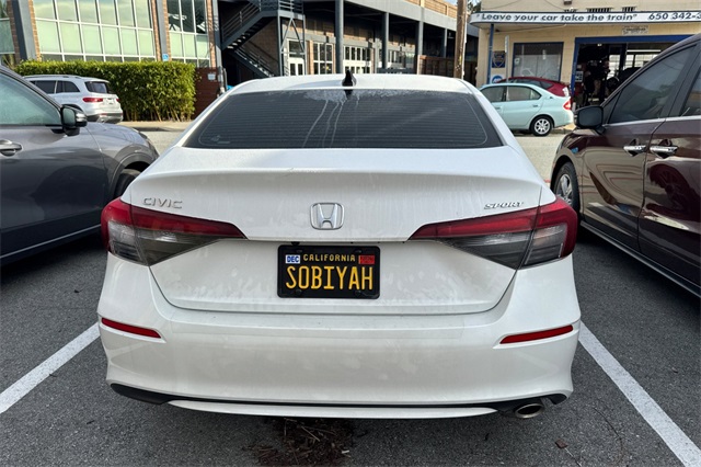 This vehicle was recently traded in at our store here in Burlingame. This 2025 Civic Sport was purchased from our dealer and serviced here. This Beauty has had and passed an extensive 182 Multi-Point Inspection conducted by our factory certified technicians. All necessary services have been done for the appropriate mileage interval including pre-delivery inspection, maintenance inspection, battery/charging system checked, body electrical system checked, GPS/Navigation system checked, emissions inspection performed, oil and filter changed, tire condition and pressure checked, vehicle washed/detailed. This vehicle comes equipped with 2 keys, Black Leather. CARFAX One-Owner. Clean CARFAX. Buy with confidence as each of our Pre-Owned Vehicles come equipped with a 90-Day/3000 Mile warranty as well as Car Doc, our exclusive maintenance and membership program. The included Car Doc Program comes with 6 Complimentary Oil Changes and 6 Complimentary Tire Rotations for the first two years of car ownership. Also, this vehicle is available to upgrade to a 3 Year or 5 Year Car Doc along with other perks to give you peace of mind when it comes to your driving experience. It's just what the doctor ordered! Whether you have good credit, bad credit or no credit get pre-approved today. This vehicle won't last long at this price! We are a large used car super store serving the Bay Area, San Francisco, Redwood City and Palo Alto. Located at 200 California Dr, Burlingame, CA. Don't waste any time, call us now.