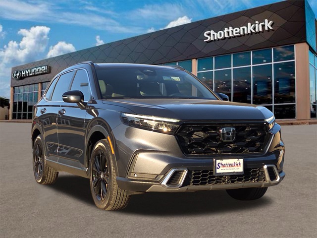 CARFAX One-Owner. Clean CARFAX. Priced below KBB Fair Purchase Price! 40/34 City/Highway MPG Apple Car Play, Android Auto, leather interior, Bluetooth, alloy wheels, power moonroof/sunroof, power driver's seat, heated front seats, cooled front seats, blind spot monitor, back up camera, local trade in, well maintained. This vehicle comes well equipped with 12 speakers, 4-wheel disc brakes, ABS brakes, adaptive cruise control with low-speed follow, air conditioning, alloy wheels, AM/FM radio: SiriusXM, auto high-beam headlights, auto-dimming rear-view mirror, automatic temperature control, blind spot information system warning, brake assist, bumpers: body-color, compass, delay-off headlights, driver door bin, driver vanity mirror, dual front impact airbags, dual front side impact airbags, electronic stability control, exterior parking camera rear, four wheel independent suspension, front anti-roll bar, front bucket seats, front center armrest, front dual zone A/C, front reading lights, fully automatic headlights, heated door mirrors, heated front bucket seats, heated front seats, heated steering wheel, illuminated entry, knee airbag, leather seat trim, leather shift knob, leather steering wheel, low tire pressure warning, memory seat, navigation system: Honda Satellite-Linked Navigation System, occupant sensing airbag, outside temperature display, overhead airbag, overhead console, panic alarm, passenger door bin, passenger vanity mirror, power door mirrors, power driver seat, power liftgate, power moonroof, power passenger seat, power steering, power windows, radio data system, radio: Bose Premium Sound System w/Navigation, rain sensing wipers, rear anti-roll bar, rear reading lights, rear seat center armrest, rear side impact airbag, rear window defroster, rear window wiper. Meteorite Gray Metallic 2025 Honda CR-V Hybrid Sport Touring Sport Touring 4D Sport Utility AWD 2.0L I4 DOHC 16V. At Shottenkirk Hyundai located in Granbury TX all of our Pre-Owned vehicles go through a 100 point plus inspection. The oil and filter are changed complete brake inspection tire rotation safety inspection and all fluid levels are topped off. If we find anything that needs attention we address the issue and fix it. So buy with confidence that you are getting a quality vehicle. Trade-ins are always welcome. We offer financing from over 25 lenders and credit unions locally and nationally.