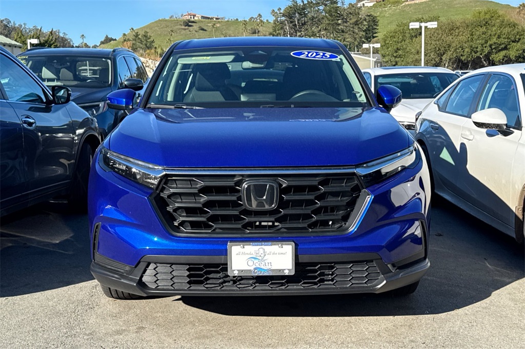 This nearly-new, stylish, and highly reliable 2025 Honda CR-V LX with only 7,128 miles was recently acquired by our store here in Santa Cruz. Finished in the striking Still Night Pearl exterior, this CR-V offers a perfect balance of modern design, everyday comfort, excellent fuel efficiency, and Honda's renowned dependability, making it an outstanding choice for commuters, families, and first-time SUV buyers. The LX trim provides a spacious and thoughtfully designed interior with a smooth ride, advanced safety technology, a user-friendly infotainment system, Bluetooth connectivity, and Honda Sensing driver-assist features. With its Front-Wheel Drive efficiency, this CR-V delivers a confident, economical, and comfortable driving experience. This vehicle is also eligible for HondaTrue Certified, offering extended warranty coverage and special certified financing rates (for qualified buyers). This beauty has undergone and passed a comprehensive multi-point inspection performed by our factory-certified Honda technicians. All essential maintenance for its mileage interval has been completed, including fresh engine oil and filter change, air and cabin filter replacement, tire rotation and balance, complete safety and systems inspection, professional interior and exterior detail. This well-cared-for CR-V LX includes 2 keys and a Clean CARFAX history.
