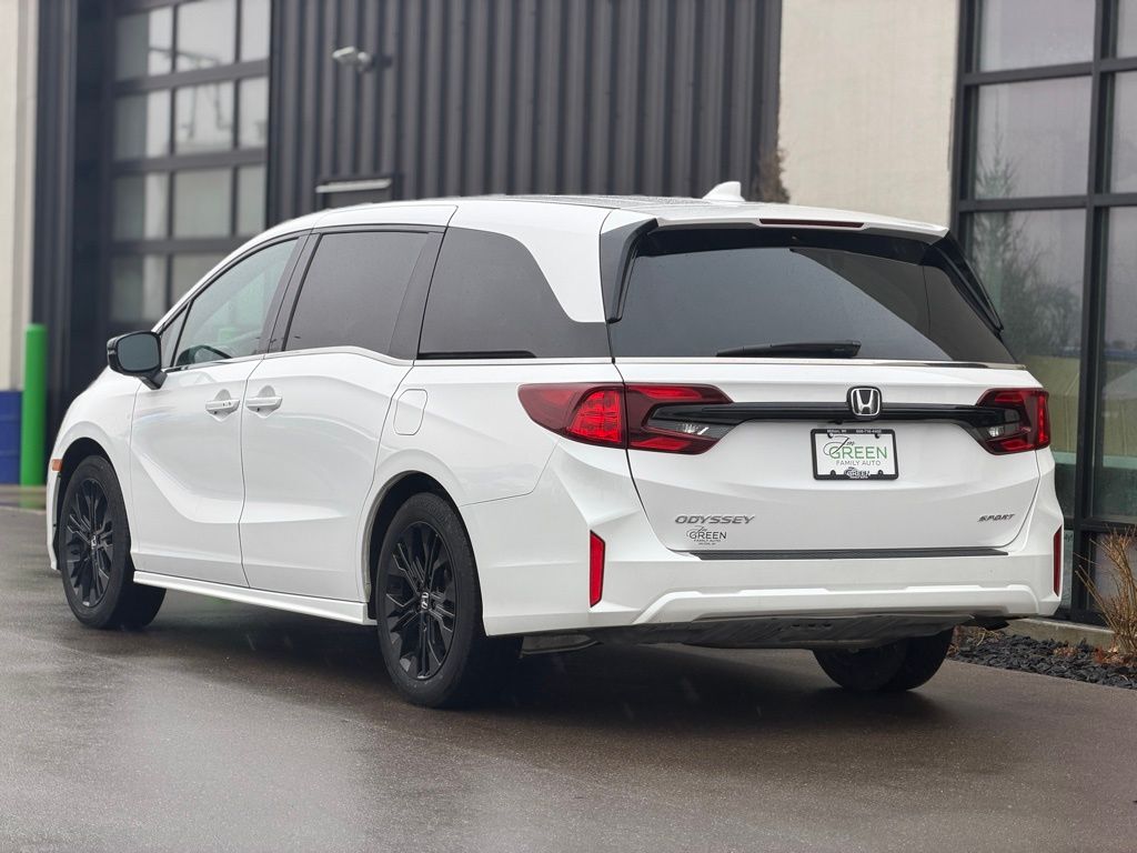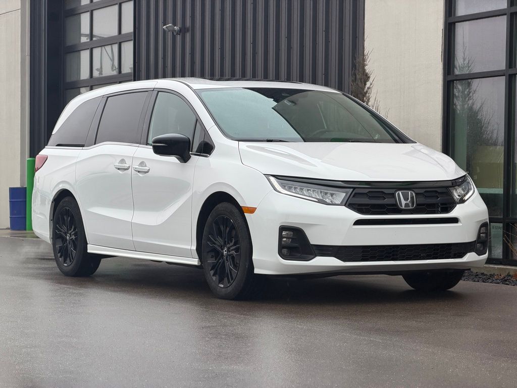 Go Further! White 2025 Honda Odyssey Sport-L FWD 10-Speed Automatic 3.5L V6 SOHC i-VTEC 24V Apple CarPlay, Android Auto, sunroof/moonroof, automatic headlights, cruise control, active park assist, backup camera, Bluetooth hands-free, keyless access with push button start, heated seats, memory driver seat, dual zone climate controls, touchscreen controls, voice recognition, HomeLink, third row seats, Odyssey Sport-L, 4D Passenger Van, 3.5L V6 SOHC i-VTEC 24V, 10-Speed Automatic, FWD, White, Leather, 4-Wheel Disc Brakes, 7 Speakers, ABS brakes, Air Conditioning, Apple CarPlay/Android Auto, Auto High-beam Headlights, Automatic temperature control, Brake assist, Dual front impact airbags, Dual front side impact airbags, Exterior Parking Camera Rear, Four wheel independent suspension, Front dual zone A/C, Fully automatic headlights, Heated door mirrors, Heated Front Bucket Seats, Illuminated entry, Leather steering wheel, Memory seat, Outside temperature display, Panic alarm, Power door mirrors, Power driver seat, Power Liftgate, Power moonroof, Power steering, Power windows, Radio data system, Rear air conditioning, Rear window defroster, Remote keyless assistant.