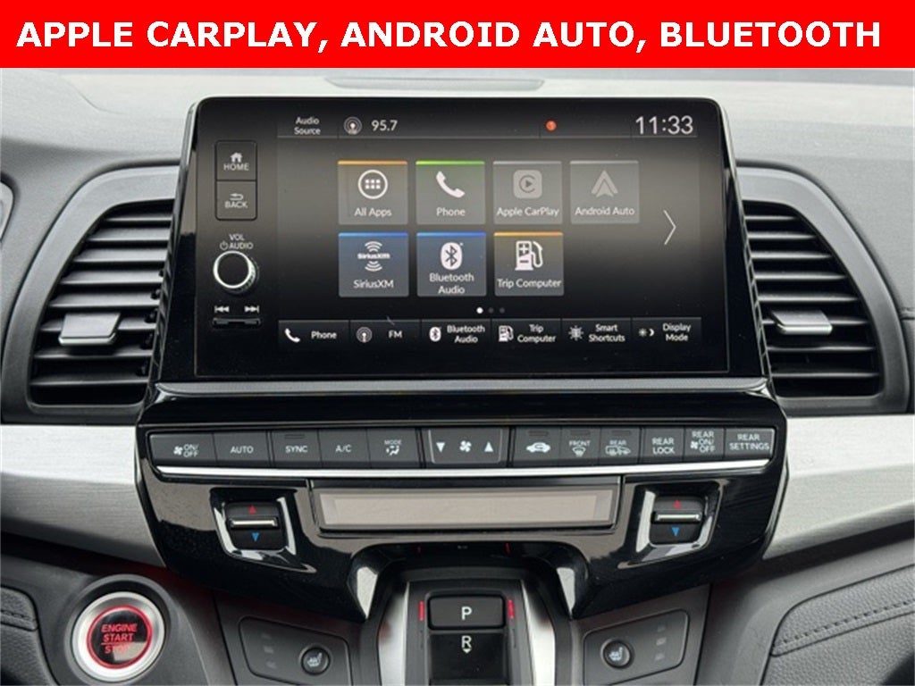 Turn heads and elevate every family drive in this Recent Arrival 2025 Honda Odyssey Sport-L FWD, a CARFAX One-Owner minivan that blends athletic styling with premium comfort and advanced technology. Finished in Crystal Black Pearl and riding on striking 19-inch gloss black alloy wheels, this Odyssey features leather-trimmed seats, heated front bucket seats, memory power driver seat, power passenger seat, power moonroof, and power sliding doors for effortless access. Stay confidently connected through a touchscreen infotainment system with Apple CarPlay, Android Auto, Bluetooth® hands-free, SiriusXM, and a 160-watt AM/FM/HD audio system, while tri-zone-style comfort is delivered via front dual-zone and rear air conditioning. A full suite of driver-assist technologies includes Collision Warning System, Adaptive Cruise Control with Low-Speed Follow, Lane Keeping Assist System, Blind Spot Information System, backup camera, and Electronic Stability Control. Additional highlights include a power liftgate, HomeLink garage door transmitter, heated door mirrors, multi-zone climate control, and versatile third-row split-bench seating, making this Odyssey Sport-L a smart choice for families seeking space, safety, and style. Rated at 19/28 City/Highway MPG, it's ready to impress.