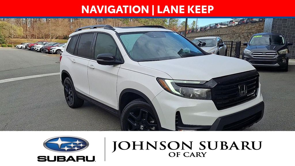 Discover the perfect blend of style, performance, and versatility in the 2025 Honda Passport Black Edition. This exceptional SUV is the ultimate companion for your adventures, offering a commanding presence on the road and a refined interior that caters to your every need. Meticulously maintained and CARFAX certified, this one-owner Passport boasts an impressive array of premium features, including panoramic moonroof, cutting-edge navigation system, lane keep assist, rear cross-traffic alert, blind spot monitoring, adaptive cruise control, power rear tailgate, Apple CarPlay integration, heated and ventilated leather seats, heated steering wheel, all-wheel drive capability. Step inside this remarkable SUV and experience the exceptional craftsmanship that sets it apart. The spacious cabin provides unparalleled comfort for you and your passengers. The 540-watt premium audio system with 10 speakers ensures an immersive listening experience, while the dual-zone automatic climate control keeps everyone in the vehicle perfectly comfortable. Beneath the sleek exterior lies the powerful 3.5L V6 engine, delivering 280 horsepower and 262 lb-ft of torque. Paired with a smooth-shifting 9-speed automatic transmission and all-wheel drive, this Passport offers the perfect blend of power and efficiency. Safety is a top priority in the 2025 Honda Passport Black Edition. Equipped with advanced driver-assist technologies like lane departure warning, blind spot monitoring, and rear cross-traffic alert, this SUV helps you navigate the roads with confidence. The comprehensive suite of airbags and electronic stability control further enhance your peace of mind. Experience the ultimate in style, performance, and technology with the 2025 Honda Passport Black Edition. This exceptional SUV is ready to elevate your driving experience and take you on unforgettable adventures.