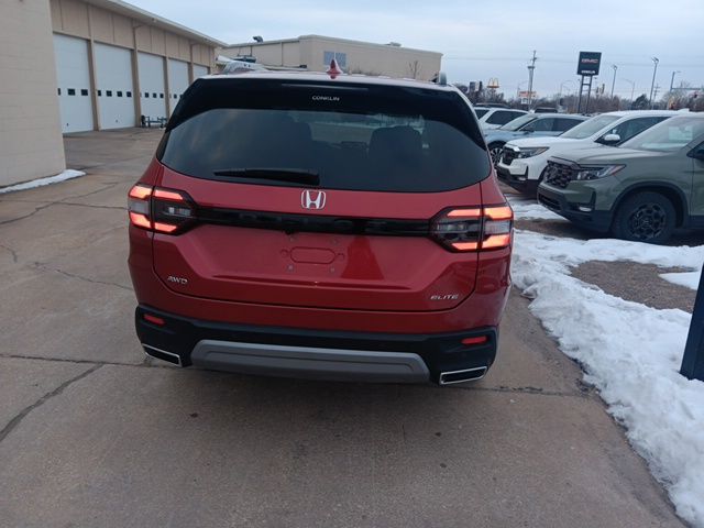 CARFAX One-Owner. 2025 Honda Pilot Elite Red AWD. Drive Forever limited lifetime engine and transmission protection on all eligible new vehicles. Every new vehicle includes a complimentary rental vehicle when you have any Service completed for three full years. Conklin Automotive Hutchinson New Car Dealership near Wichita Kansas. Recent Arrival! Odometer is 9835 miles below market average!
