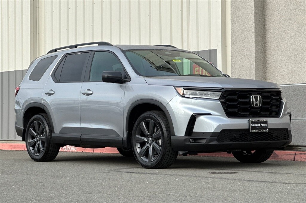 Oakland Acura is pleased to present for sale this stunning 2025 Honda Pilot Sport as part of our hand-selected pre-owned lineup. This gorgeous vehicle is finished in the Lunar Silver Metallic exterior paint and Black interior. CARFAX One-Owner. Odometer is 13605 miles below market average!