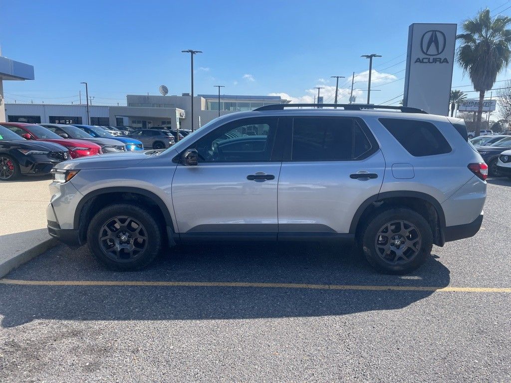 Welcome to Walker Acura. Here at our Metairie, Louisiana, Acura dealership, we have devoted ourselves to helping and serving our customers to the best of our ability. What to know "what's my trade worth?" With our Value Your Trade tool, you can get an instant estimate for your current vehicle. Our dealership regularly offers competitive lease deals and finance offers to help you save! Walker Acura is your preferred Acura Dealership, serving Metairie, Kenner, New Orleans and all of Louisiana. Visit us at www.walkeracura.com to view our complete inventory. Schedule service with our certified technicians and get a value for your trade in. This 2025 Honda Pilot TrailSport is a remarkable SUV that seamlessly blends rugged capability with refined luxury. Powered by a robust 3.5L V6 DOHC 24V engine paired with a smooth-shifting 10-Speed Automatic transmission and Intelligent All-Wheel Drive, this Pilot delivers impressive performance and confident handling, whether navigating city streets or tackling off-road adventures. The exterior of this Pilot exudes a bold, adventurous spirit with its sleek Silver finish and distinctive TrailSport styling cues. Step inside and you'll be surrounded by premium comfort and convenience features, including a spacious and versatile cabin, heated front seats, a power moonroof, and a premium audio system with SiriusXM radio. Safety is also a top priority, with advanced driver-assistance technologies like Blind Spot Information System, Lane Keeping Assist, and Adaptive Cruise Control ensuring you and your passengers arrive at your destination with peace of mind. Whether you're looking for a family-friendly SUV, an outdoor enthusiast's companion, or a sophisticated daily driver, this 2025 Honda Pilot TrailSport is sure to exceed your expectations. Schedule a test drive today and experience the perfect blend of capability, comfort, and technology.
