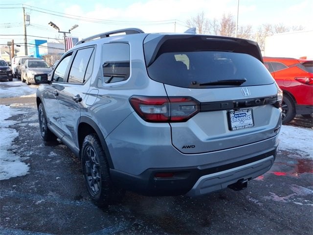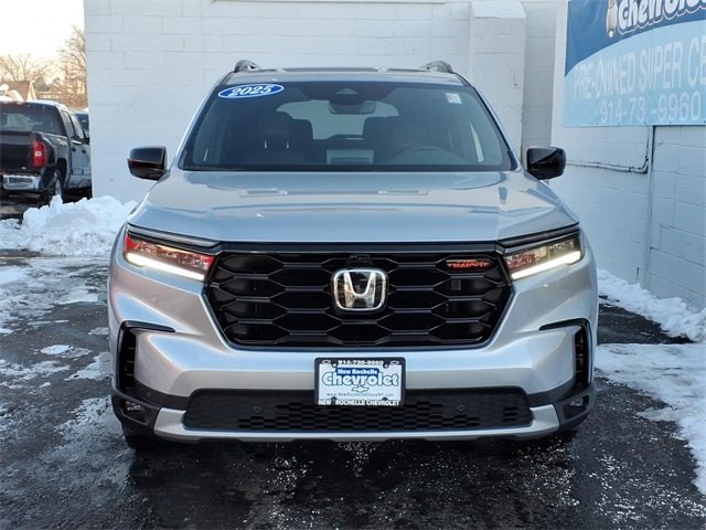 Gray 2025 Honda Pilot TrailSport AWD 10-Speed Automatic 3.5L V6 DOHC 24V. At New Rochelle Chevrolet our pricing strategy guaranties you the most aggressive pricing up front with no games or gimmicks. Our advertised price is our best price and we are confident you will be completely satisfied with the complete buying experience at New Rochelle Chevrolet! Scheduled an appointment to test drive any of our Pre-owned cars today. We appreciate the opportunity to earn your business. New Rochelle Chevrolet is dedicated to your satisfaction before, during, and after your purchase. We'll go the extra mile to take care of you.