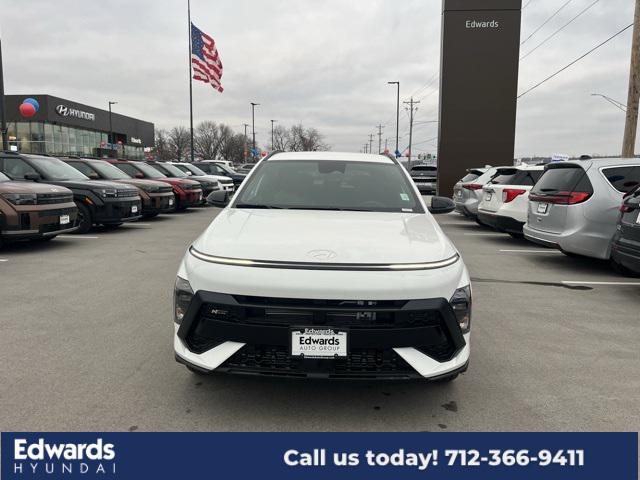 The 2025 Hyundai Kona N Line in Atlas White is a dynamic and stylish subcompact SUV that combines sporty performance with eye-catching design. The clean, crisp Atlas White exterior enhances the Kona N Line's aggressive presence, featuring bold accents, a sleek front grille, and a distinctive N Line badge. The sport-inspired body lines, paired with a lower, more muscular stance, give the Kona N Line an energetic look that reflects its performance-oriented nature. Inside, the Kona N Line of... (more)