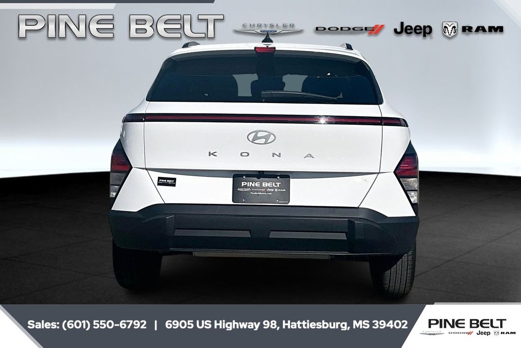 Discover the exceptional 2025 Hyundai Kona SEL, a versatile and dynamic crossover that seamlessly blends style, comfort, and advanced technology. With its sleek exterior design, spacious interior, and impressive performance, this Kona is poised to exceed your expectations. The Kona's advanced technology features, including Apple CarPlay & Android Auto, further enhance your driving experience. Stay connected and entertained with the AM/FM/HD Radio/SiriusXM Audio System, while the Exterior Parking Camera Rear provides added peace of mind when maneuvering in tight spaces. Versatility is at the heart of the Kona, with the Split folding rear seat and Front Bucket Seats allowing you to adapt the cabin to your needs. Whether you're embarking on a weekend adventure or navigating the daily commute, the Kona's Four wheel independent suspension and Speed-sensing steering deliver a smooth and responsive ride. Experience the perfect blend of style, performance, and technology in the 2025 Hyundai Kona SEL. Visit Pinebelt CDJR today and discover how this exceptional crossover can elevate your driving experience.