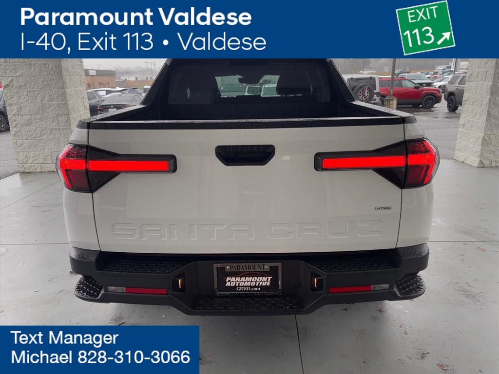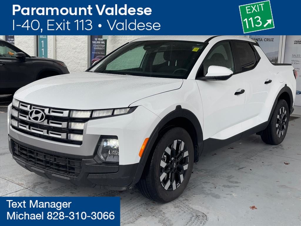 Carfax Certified, 4D Crew Cab, 2.5L I4, 8-Speed Automatic with SHIFTRONIC, AWD, Alloy wheels, Exterior Parking Camera Rear, Option Group 01, Power windows, Speed control, Telescoping steering wheel, Tilt steering wheel. 2025 Hyundai Santa Cruz SE Clean CARFAX. 21/29 City/Highway MPG. Come experience this Hyundai here at Paramount Ford / Hyundai I-40 Exit 113 Valdese!