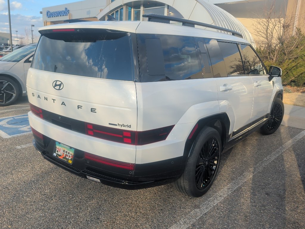 Find exceptional value in this 2025 Hyundai Santa Fe Hybrid Calligraphy, now available in Loveland, CO. With only 5,696 miles, this low-mileage premium SUV combines efficient 1.6L 4-cylinder Full Hybrid Electric (FHEV) performance with confident AWD capability, delivering smooth, economical driving for Colorado roads. The Calligraphy trim elevates comfort and technology, featuring luxurious leather seats, integrated navigation, and a premium BOSE stereo for an immersive audio experience on every trip. Stay connected with seamless Apple CarPlay and Android Auto integration, making hands-free calling, messaging, and navigation simple and safe. Advanced hybrid engineering optimizes fuel efficiency while providing responsive acceleration and a refined ride, ideal for daily commutes or weekend getaways. The spacious, well-appointed interior offers upscale touches and practical versatility, ensuring passenger comfort and cargo flexibility. Priced competitively as the best deal in the area, this Hyundai Santa Fe Hybrid Calligraphy represents outstanding value for drivers seeking a modern, efficient, and feature-rich SUV. Located in Loveland, CO, it's ready for immediate viewing and test drives. Don't miss your chance to own a low-mileage, top-trim hybrid with premium technology and AWD capability at the best price—schedule a visit today and experience this exceptional Hyundai Santa Fe Hybrid in person.