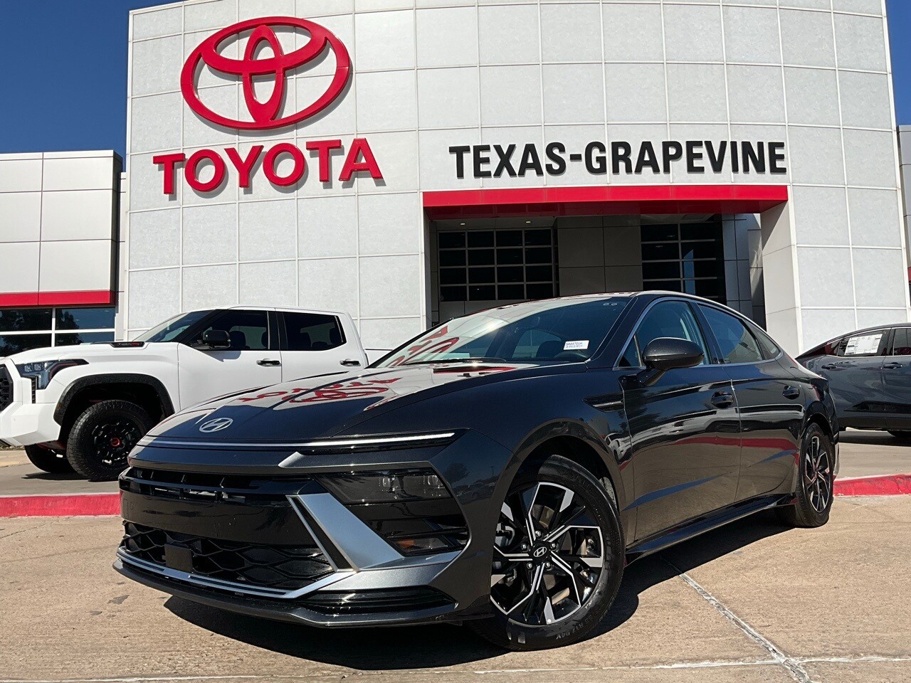 2025 Hyundai Sonata SEL. Located just minutes from DFW Airport, Texas Toyota of Grapevine is the premier Toyota dealership to meet all of your needs. Clean CARFAX. Backup Camera, Blind Spot Monitor with Rear Cross-Traffic Alert, Heated Seats, LED Accent Lighting, Night Vision Auto-Dimming Mirror, Remote Start, Wheels, across from DFW Airport, Lane departure Alert with Sway Warning, Auto high beams, Push Button Start, Apple CarPlay Compatible, Android Auto, Black with Cloth Seating Surfaces, 17" x 7.0J Aluminum Alloy Wheels, 4-Wheel Disc Brakes, ABS brakes, AM/FM radio: SiriusXM, Apple CarPlay & Android Auto, Auto High-beam Headlights, Automatic temperature control, Brake assist, Bumpers: body-color, Cloth Seating Surfaces, Delay-off headlights, Driver door bin, Driver vanity mirror, Dual front impact airbags, Dual front side impact airbags, Electronic Stability Control, Emergency communication system: Bluelink+, Exterior Parking Camera Rear, Four wheel independent suspension, Front anti-roll bar, Front Bucket Seats, Front Center Armrest, Front dual zone A/C, Front reading lights, Fully automatic headlights, Heated door mirrors, Heated Front Bucket Seats, Heated front seats, Illuminated entry, Knee airbag, Low tire pressure warning, Occupant sensing airbag, Option Group 01, Outside temperature display, Overhead airbag, Overhead console, Panic alarm, Passenger vanity mirror, Power door mirrors, Power driver seat, Power windows, Radio data system, Radio: AM/FM/HD/SiriusXM, Rear anti-roll bar, Rear seat center armrest, Rear side impact airbag, Rear window defroster, Remote keyless entry, Security system, Speed control, Speed-sensing steering, Speed-Sensitive Wipers, Split folding rear seat, Steering wheel mounted audio controls, Tachometer, Telescoping steering wheel wheel turn Telescoping steering wheel Telescoping steering wheel Telescoping steering Telescoping steering Telescoping steering Telescoping steering Telescoping the Te.