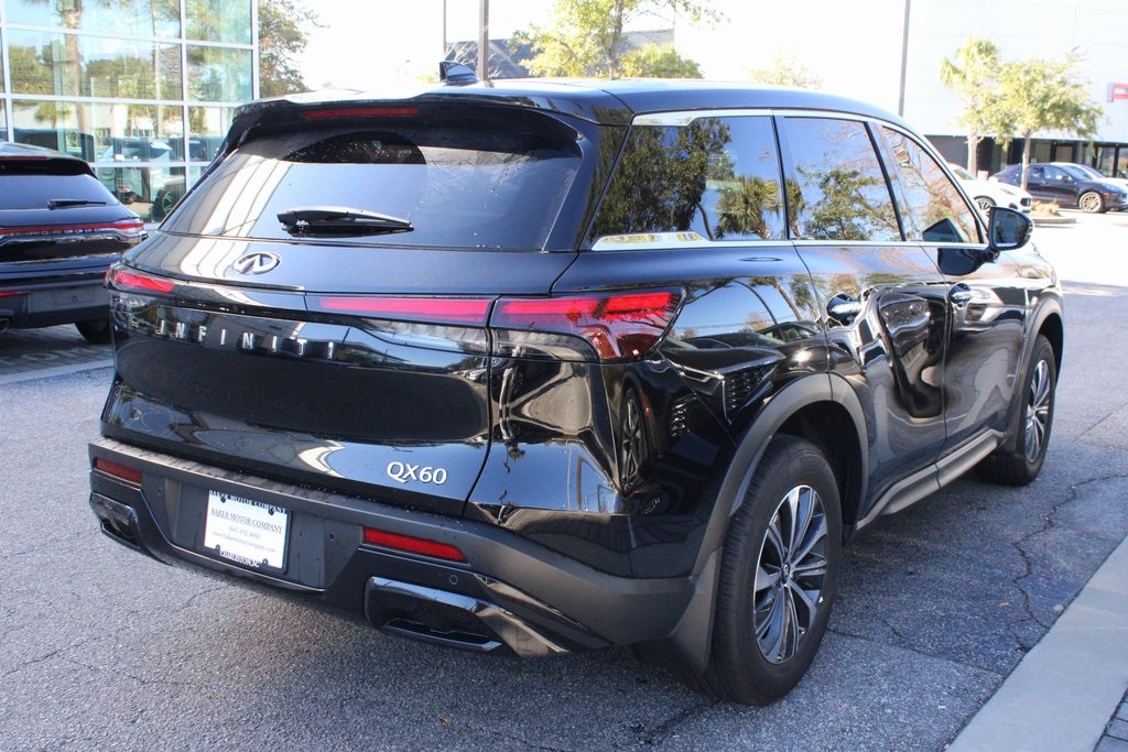 Certified with great color combination! Baker Motor Company of Charleston was founded in 1988 by Tommy B. Baker and is the largest privately held automobile dealer group headquartered in South Carolina. The company operates manufacturer-authorized, new car dealerships representing 12 brands including Porsche, Rolls-Royce Motor Cars, Mercedes-Benz, Sprinter, smart, INFINITI, Maserati, Jaguar, Land Rover, Buick, GMC, and Cadillac. The company also operates two high-line pre-owned centers, a reconditioning center, and a full service, USAA and State Farm Insurance-approved collision repair center. Recent Arrival! Mineral Black 2025 INFINITI QX60 PURE Clean CARFAX. Odometer is 7747 miles below market average! INFINITI Certified Pre-Owned Details: "Transferable" Warranty.