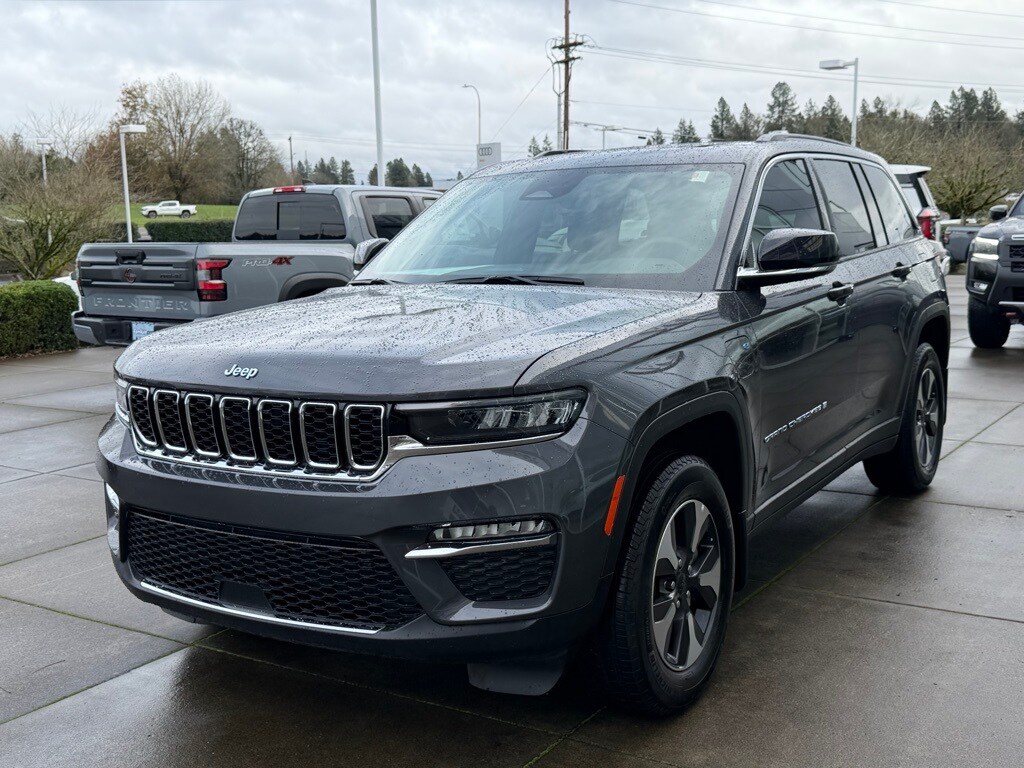 2025 Jeep Grand Cherokee 4xe Baltic Gray Metallic Clearcoat 2.0L I4 DOHC 2.0L I4 DOHC, 4WD, 10 Speakers, 3.70 Rear Axle Ratio, 4-Wheel Disc Brakes, ABS brakes, Air Conditioning, Alloy wheels, AM/FM radio: SiriusXM with 360L, Anti-whiplash front head restraints, Audio memory, Auto High-beam Headlights, Automatic temperature control, Brake assist, Bumpers: body-color, Capri Leatherette Seats, Compass, Delay-off headlights, Driver door bin, Driver vanity mirror, Dual front impact airbags, Dual front side impact airbags, Electronic Stability Control, Four wheel independent suspension, Front anti-roll bar, Front Bucket Seats, Front Center Armrest w/Storage, Front dual zone A/C, Front fog lights, Front reading lights, Fully automatic headlights, Garage door transmitter, Heated door mirrors, Heated front seats, Heated rear seats, Heated steering wheel, Heavy Duty Suspension, Illuminated entry, Knee airbag, Low tire pressure warning, Memory seat, Model Year Tracking, MOPAR Finishing Package, MOPAR Front Splash Guards, MOPAR Paint Protection Film, Navigation System, Occupant sensing airbag, Outside temperature display, Overhead airbag, Overhead console, Panic alarm, ParkView Rear Back-Up Camera, Passenger door bin, Passenger vanity mirror, Power door mirrors, Power driver seat, Power Liftgate, Power moonroof, Power passenger seat, Power steering, Power windows, Quick Order Package 27F, Radio data system, Rear anti-roll bar, Rear reading lights, Rear window defroster, Rear window wiper, Remote keyless entry, Security system, Speed control, Speed-Sensitive Wipers, Split folding rear seat, Spoiler, Steering wheel mounted audio controls, Tachometer, Telescoping steering wheel, Tilt steering wheel, Traction control, Trip computer, Turn signal indicator mirrors, Variably intermittent wipers, Voltmeter, Wheels: 18" x 8" Fully Painted Aluminum. CARFAX One-Owner. Priced below KBB Fair Purchase Price! Our Best Price Up Front, No Games or Gimmicks. Our advertised price is for a retail type purchase and may not be available for Fleet or Commercial use type purchase; please call us to confirm.