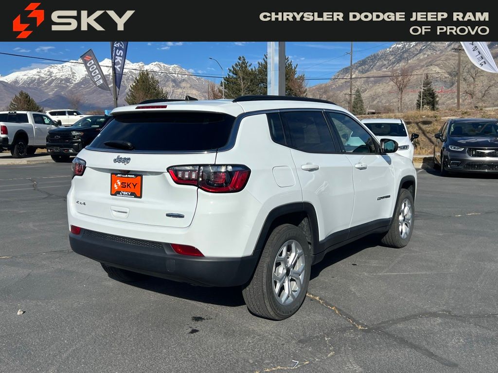 Bright White Clearcoat 2025 Jeep Compass Latitude 4WD 8-Speed Automatic 2.0L I4 DOHC 4WD. Check out our award winning dealership! 5-star google review, drive a little save a lot. Sale Price Includes $1,000 Finance Savings. Contact Dealer For Details. Sky Chrysler Dodge Jeep Ram of Provo is dedicated to your satisfaction before, during, and after your purchase. We'll go the extra mile to take care of you.