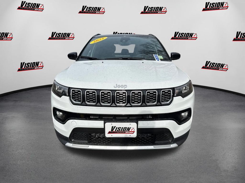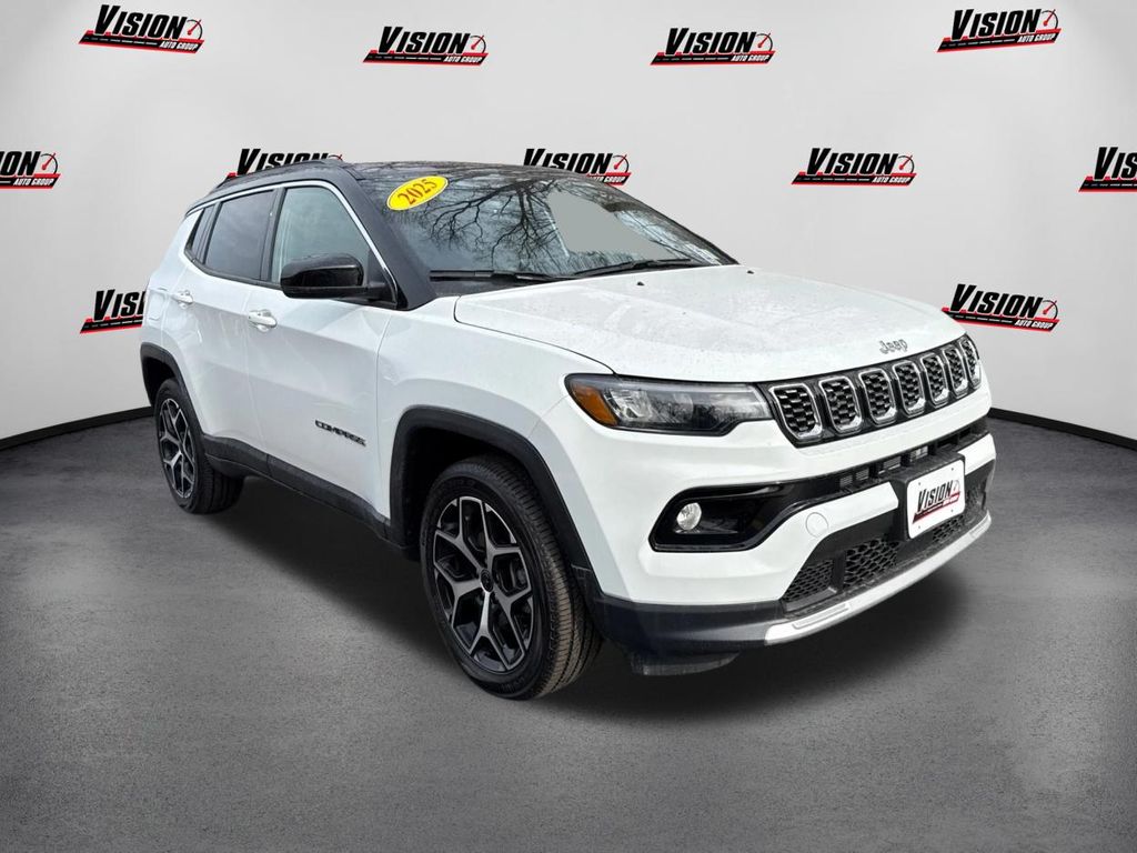 Elevate your driving experience with this stunning 2025 Jeep Compass Limited. Boasting a sleek white exterior and a well-appointed interior, this SUV is the perfect blend of style and capability. Under the hood, you'll find a powerful 2.0L I4 DOHC engine paired with an 8-speed automatic transmission and 4-wheel drive, delivering an impressive 24 city and 32 highway MPG. This Compass is equipped with a wealth of premium features, including Uconnect 5 with 10.1" touchscreen display, Apple CarPlay/Android Auto, heated front seats, leather-wrapped steering wheel, dual-zone automatic climate control, rearview camera with dynamic grid lines, blind spot monitoring with rear cross-path detection, forward collision warning with active braking, and adaptive cruise control. The Jeep Compass Limited offers the perfect balance of comfort, technology, and off-road prowess. With its spacious cabin, ample cargo room, and renowned Jeep capability, this SUV is ready to take you and your family on all of your adventures. Experience the difference with this exceptional 2025 Jeep Compass Limited. Visit our showroom today and let our knowledgeable sales team demonstrate how this vehicle can elevate your driving experience.
