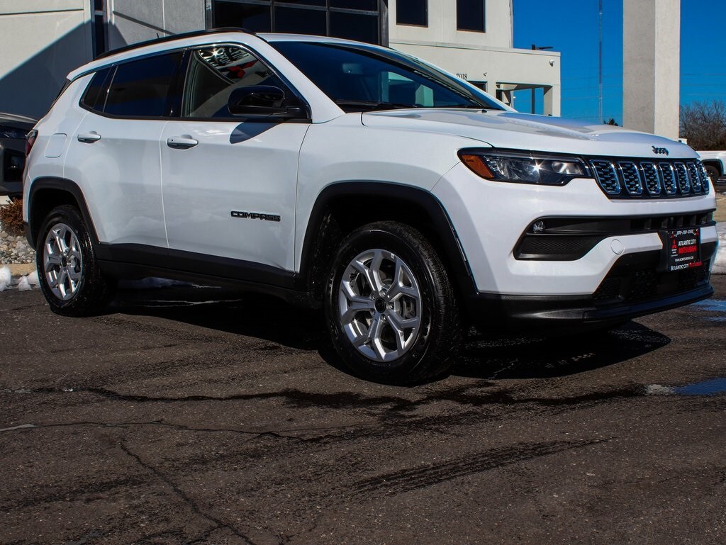 2025 Jeep Compass Latitude Recent Arrival! Clean Carfax, one owner, Bluetooth, fully reconditioned, navigation, alloy wheels, panoramic sunroof. Compass Latitude, 4D Sport Utility, 2.0L I4 DOHC, 8-Speed Automatic, 4WD, Bright White Clearcoat, Black w/Premium Cloth/Vinyl Bucket Seats, Convenience Group, Sun & Sound Group, 2nd Row USB Type A/C Charge Only, 4-Wheel Disc Brakes, ABS brakes, Air Conditioning ATC w/Dual Zone Control, All-Season Floor Mats, Apple CarPlay/Android Auto, Auto High-beam Headlights, Auto-Dimming Rear-View Mirror, Brake assist, Cruise control, Dual front impact airbags, Dual front side impact airbags, Electronic Stability Control, Foot Activated Open 'N Go Liftgate, Four wheel independent suspension, Front Center Armrest w/Storage, Front fog lights, Fully automatic headlights, Heated door mirrors, Heated front seats, Heated steering wheel, Humidity Sensor, Illuminated entry, Knee airbag, Leather Shift Knob, Leather steering wheel, Low tire pressure warning, Occupant sensing airbag, Overhead airbag, Panic alarm, ParkView Rear Back-Up Camera, Power 2-Way Driver Lumbar Adjust, Power Adjust 8-Way Driver Seat, Power door mirrors, Power Front/Fixed Rear Full Sunroof, Power Liftgate, Premium Alpine Speaker System, Premium Cloth/Vinyl Bucket Seats, Quick Order Package 29J, Radio: Uconnect 5 w/8.4" Display, Rear window defroster, Remote keyless entry, Reversible Carpet/Vinyl Cargo Mat, Security system, Sliding Sun Visors w/Illuminated Mirrors, Telescoping steering wheel, Tilt steering wheel, Traction control, Wheels: 17" x 7" Aluminum (DISC), Windshield Wiper De-Icer. 24/32 City/Highway MPG.
