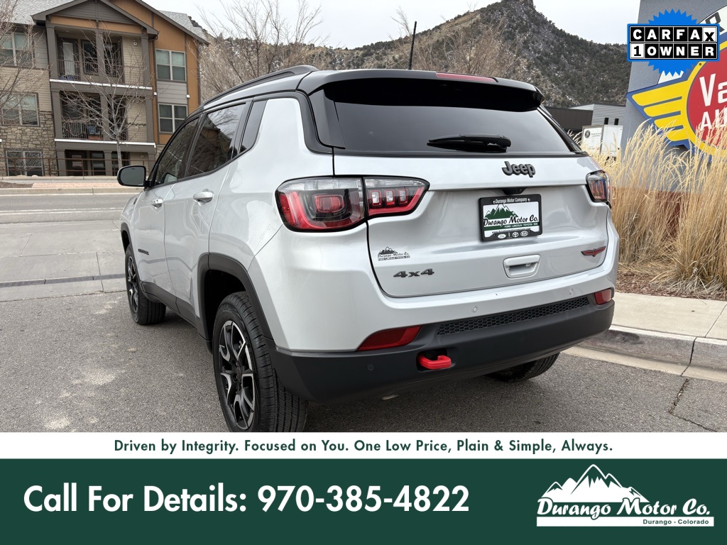 2025 Jeep Compass Trailhawk 4WD 8-Speed Automatic 2.0L I4 DOHC Clean Carfax, One Owner, 4WD, 4-Wheel Disc Brakes, ABS brakes, AM/FM radio: SiriusXM, Apple CarPlay/Android Auto, Auto High-beam Headlights, Auto-dimming Rear-View mirror, Automatic temperature control, Compass, Delay-off headlights, Electronic Stability Control, Four wheel independent suspension, Front dual zone A/C, Front fog lights, Fully automatic headlights, Heated door mirrors, Low tire pressure warning, Panic alarm, ParkView Rear Back-Up Camera, Power windows, Premium audio system: UConnect 5, Radio: Uconnect 5 w/10.1" Display, Rain Suing Wipers.