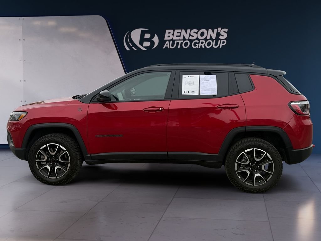 CARFAX One-Owner. Red Hot Pearlcoat 2025 Jeep Compass Trailhawk 4WD 8-Speed Automatic 2.0L I4 DOHC 4WD, 10.1" Touchscreen Display, 360 Surround View Camera System, 4 Pin Wiring Harness, 4-Wheel Disc Brakes, 4.398 Final Drive Ratio, 6 Speakers, ABS brakes, Active Driving Assist System, Air Conditioning, Alloy wheels, AM/FM radio: SiriusXM, Apple CarPlay/Android Auto, Auto High-beam Headlights, Auto-dimming Rear-View mirror, Automatic temperature control, Brake assist, Bumpers: body-color, Class III Receiver Hitch, Compass, Delay-off headlights, Driver Assist Group I, Driver door bin, Driver vanity mirror, Dual front impact airbags, Dual front side impact airbags, Electronic Stability Control, Emergency communication system: Jeep Connect Connect, Four wheel independent suspension, Four wheel independent suspension. Recent Arrival!