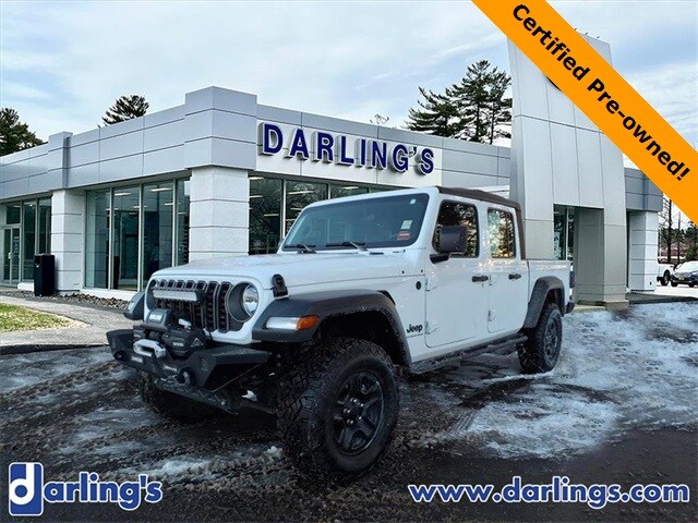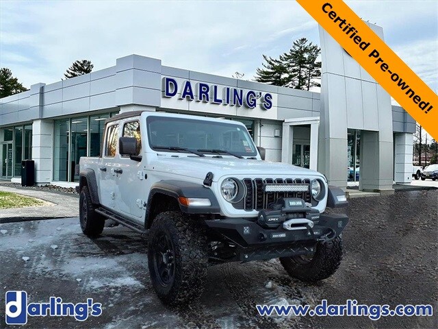 One-Owner 2025 Jeep Gladiator Sport 4x4 ready for boats, campers, and Maine adventures. Heavy-Duty Dana 44 Front & Rear Axles built for real 4x4 capability. Command-Trac Part-Time 4WD System for confidence on snow, trails, and back roads. Uconnect Touchscreen with Apple CarPlay & Android Auto. Premium Audio System with steering-wheel-mounted controls. One-Owner Vehicle that blends Jeep toughness with everyday usability. This vehicle has been brought to the highest standard possible and then backed by us all the way to 100,000 miles. Community-Driven & Customer-Focused. Darling's Certified Pre-Owned means this Jeep comes with a powertrain warranty that will go to 7 years from the original in-service date or 100,000 total odometer miles, whichever comes first. Darling's Auto Group is highly involved in the community and has been for a century, delivering 5-star service before and after the sale. To make things even easier, we offer free delivery anywhere within the state of Maine because buying your next Jeep should be just as enjoyable as driving it.