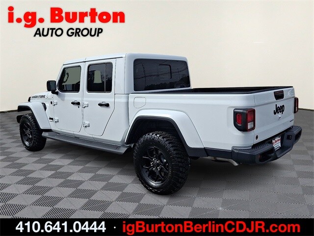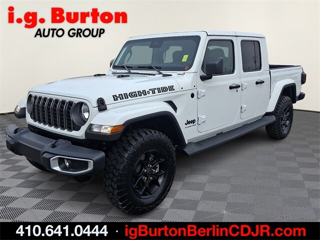 Recent Arrival! Carfax One-Owner. Clean Carfax. 2025 Jeep Gladiator High Tide Bright White Clearcoat. Odometer is 3567 miles below market average! High Tide. Since 1908, i.G. Burton Auto Group has served Delmarva and its surrounding communities with outstanding sales and service as its longest-standing family-owned and operated dealer group. See why we proudly say, "Nobody Beats a Burton Deal! NOBODY!"