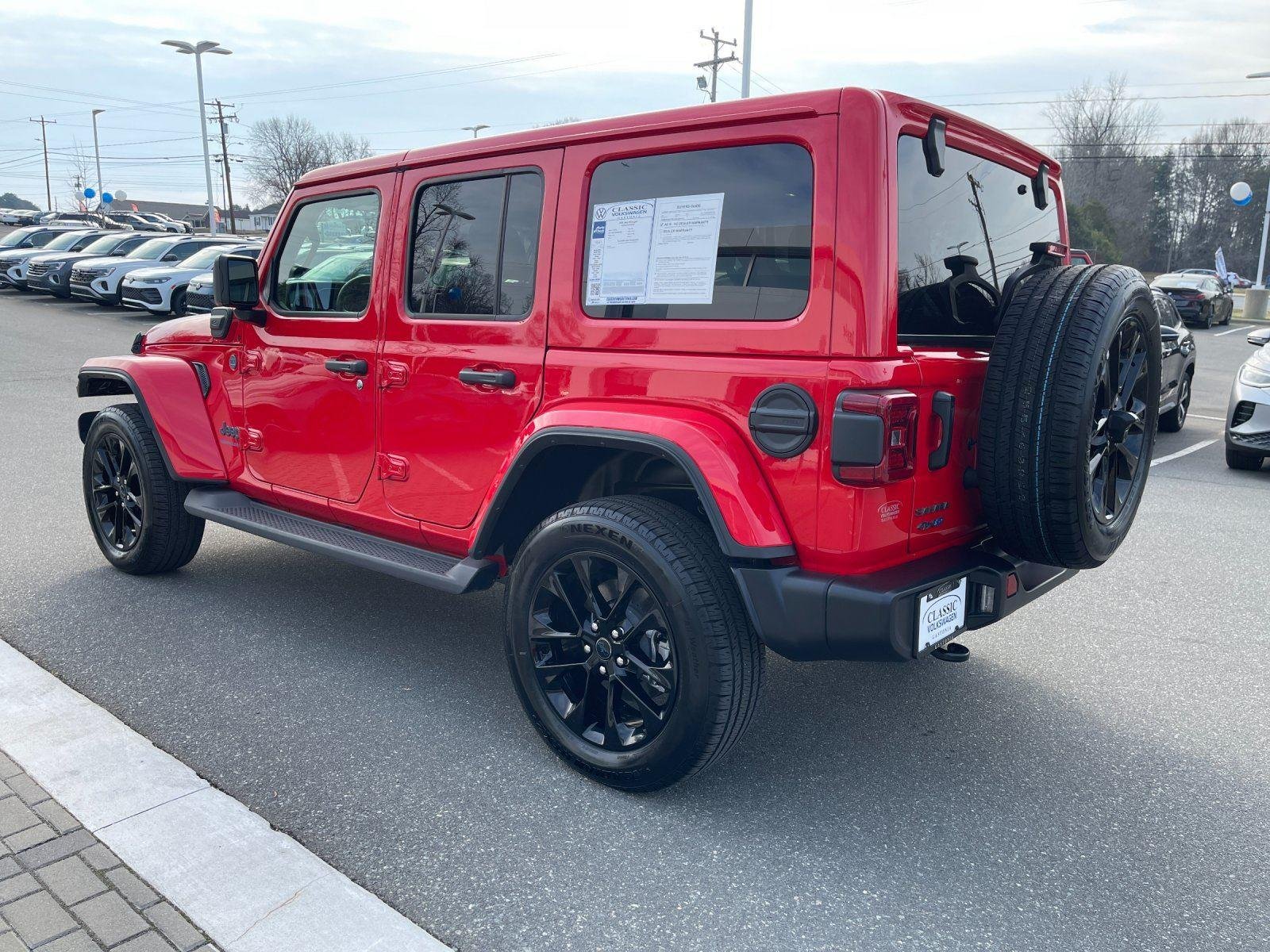 2025 Jeep Wrangler Sahara 4xe Plug-In Hybrid. Red Clear Coat. Hard Top. 13,000 Miles. Savings $25,987. If you're looking for a 2025 Jeep Wrangler Sahara 4xe for sale, this is the perfect mix of performance, efficiency, and value. This is not your standard Wrangler. Instant electric torque with proven Jeep capability. Big power. Big savings. Legendary capability.