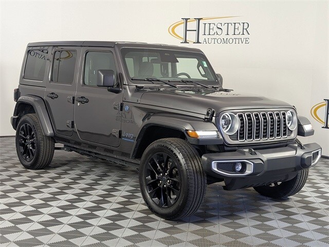 Granite Crystal Metallic Clearcoat 2025 Jeep Wrangler Sahara 4xe 4WD 8-Speed Automatic 2.0L I4 DOHC. Well equipped with: Quick Order Package 29P Sahara 4xe, Safety Group (Auto High Beam Headlamp Control, Blind Spot & Cross Path Detection, and ParkSense Rear Park Assist System), FCA US LLC Certified Pre-Owned Certified, 2.0L I4 DOHC, 3.73 Rear Axle Ratio, 4-Wheel Disc Brakes, 4G LTE Wi-Fi Hot Spot, 8 Speakers, ABS brakes, Air Conditioning, Alloy wheels, AM/FM radio: SiriusXM, Apple CarPlay, Apple CarPlay/Android Auto, Automatic temperature control, Body Color 3-Piece Hard Top, Brake assist, Cloth Low-Back Bucket Seats, Compass, Connectivity - US/Canada, Delay-off headlights, Driver door bin, Driver vanity mirror, Dual front impact airbags, Dual front side impact airbags, Electronic Stability Control, Emergency communication system: Jeep Connect, Freedom Panel Storage Bag, Front anti-roll bar, Front Bucket Seats, Front Center Armrest w/Storage, Front dual zone A/C, Front fog lights, Front License Plate Bracket (DISC), Front reading lights, Fully automatic headlights, Google Android Auto, Heated door mirrors, Heated front seats, Heated steering wheel, Illuminated entry, Integrated Center Stack Radio, Integrated roll-over protection, Integrated Voice Command w/Bluetooth, Low tire pressure warning, Occupant sensing airbag, Outside temperature display, Overhead airbag, Panic alarm, ParkView Rear Back-Up Camera, Passenger door bin, Passenger vanity mirror, Power door mirrors, Power steering, Power windows, Radio data system, Radio: Uconnect 5 w/12.3" Display, Rear anti-roll bar, Rear reading lights, Rear seat center armrest, Rear Window Defroster, Rear Window Wiper/Washer, Remote keyless entry, Security system, Speed control, Split folding rear seat, Sport Suspension, Steering wheel mounted audio controls, Tachometer, Telescoping steering wheel, Tilt steering wheel, Traction control, Trip computer, Variably intermittent wipers, Voltmeter.