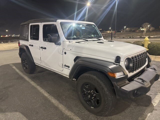 Clean CARFAX. CARFAX One-Owner. Priced below KBB Fair Purchase Price! Bright White Clearcoat 2025 Jeep Wrangler Sport 4WD 8-Speed Automatic 2.0L I4 DOHC. One owner!, Bluetooth!, 4WD!, Priced right!, Local trade, Detailed, Non smoker. Recent Arrival! This 2025 Jeep Wrangler comes equipped with Quick Order Package 22B Sport, 110 MPH Vehicle Max Speed Calibration, 3.45 Overall Top Gear Ratio, 4-Wheel Disc Brakes, 8 Speakers, ABS brakes, Air Conditioning, AM/FM radio: SiriusXM, Apple CarPlay/Android Auto, Aux Battery, Brake assist, Cloth Low-Back Bucket Seats, Compass, Delay-off headlights, Driver door bin, Driver vanity mirror, Dual front impact airbags, Dual front side impact airbags, Electronic Stability Control, Front anti-roll bar, Front Bucket Seats, Front Center Armrest w/Storage, Front fog lights, Front reading lights, Illuminated entry, Integrated roll-over protection, Low tire pressure warning, MOPAR All-Weather Floor Mats, Non-Lock Fuel Cap w/o Discriminator, Normal Duty Suspension, Occupant sensing airbag, Outside temperature display, Overhead airbag, Panic alarm, ParkView Rear Back-Up Camera, Passenger door bin, Passenger vanity mirror, Power steering, Power windows, Radio data system, Radio: Uconnect 5 w/12.3" Display, Rear anti-roll bar, Rear reading lights, Remote keyless entry, Speed control, Split folding rear seat, Steering wheel mounted audio controls, Stop-Start Dual Battery System, Tachometer, Telescoping steering wheel, Tilt steering wheel, Traction control, Trip computer, Variably intermittent wipers, and Wheels: 17" x 7.5" Black Steel Styled. Contact us today to confirm availability and to schedule a test drive! We pride ourselves in the quality that we offer on all of our vehicles.