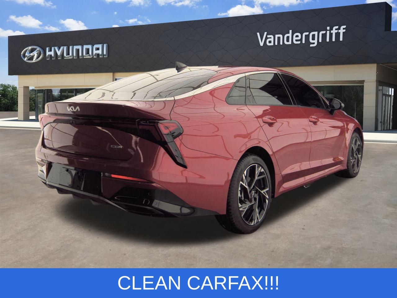 Recent Arrival! One owner! Clean Carfax! K5 GT-Line, 4D Sedan, I4, 8-Speed Automatic, Runway Red, front dual zone A/C, heated front bucket seats, navigation system, power driver seat, power steering, remote keyless entry, wheels: 18" x 7.5J Gloss Black Machined Finish Alloy. Clean Carfax. Carfax One-Owner. Here at Vandergriff Hyundai we strive to provide some of the best prices in the DFW Metroplex and surrounding areas. Our team works hard to give you the best Pre-Owned purchase experience. Thank you for choosing Vandergriff Hyundai. Price excludes tax, title, license, and document fee. Please print this page and come see us now for a personalized test drive towards your new vehicle! At Vandergriff Hyundai, we go above and beyond expectations. Come experience the difference in our services, products, and processes—professionalism, integrity, and commitment. Located at I-20 and Cooper across from the Parks Mall in Arlington.