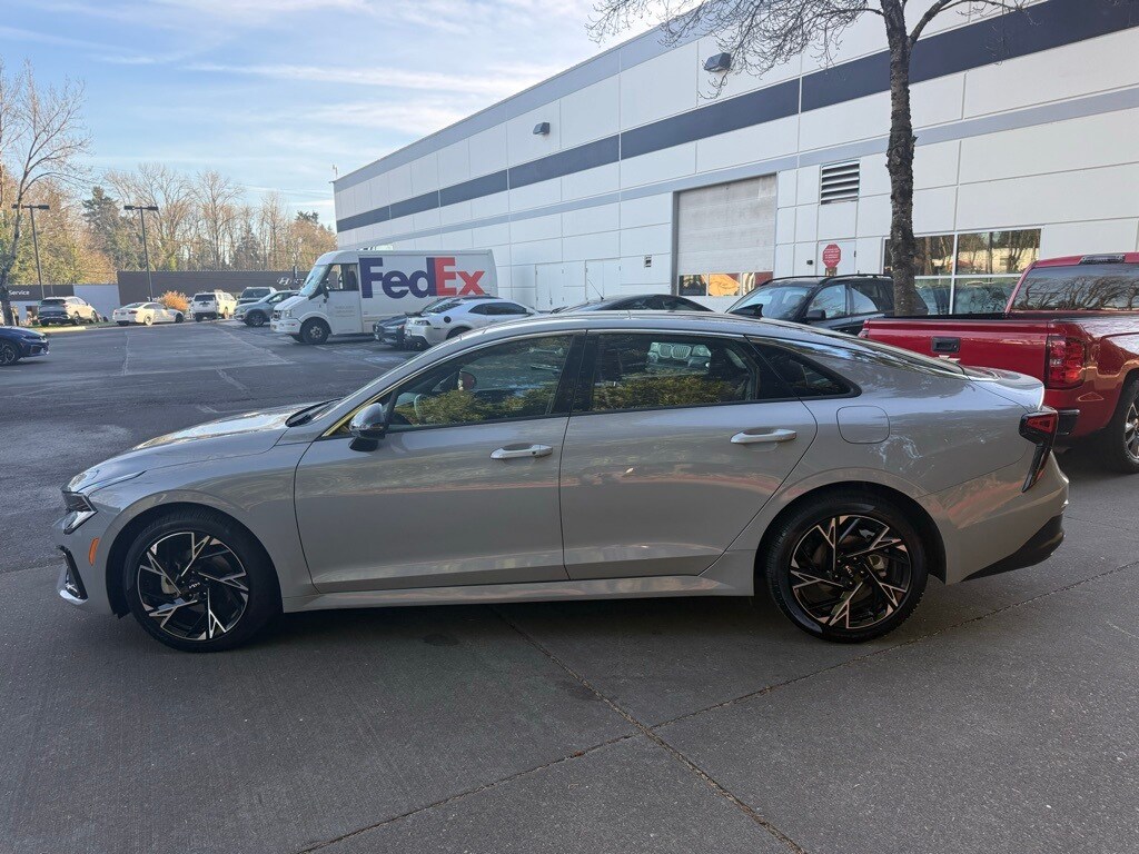 2025 Kia K5 GT-Line Wolf Gray I4 Bluetooth, Cruise Control, Heated Seats, Keyless Entry, Leather Seats, Power Windows, Steering Wheel Controls, One Owner, Local Trade, Clean CarFax, Front Wheel Drive, Alloy Wheels, Sunroof/Moonroof, 4-Wheel Disc Brakes, 6 Speakers, ABS brakes, Active Sound Design, Air Conditioning, Alloy wheels, AM/FM radio: SiriusXM, Auto High-beam Headlights, Automatic temperature control, Bose Premium Audio, Brake assist, Bumpers: body-color, Carpeted Floor Mats, Delay-off headlights, Driver door bin, Driver vanity mirror, Dual front impact airbags, Dual front side impact airbags, Electronic Stability Control, Emergency communication system: Kia Connect (includes 1 year free trial), Four wheel independent suspension, Front anti-roll bar, Front Bucket Seats, Front Center Armrest, Front dual zone A/C, Front fog lights, Front reading lights, Fully automatic headlights, GT-Line Premium Package, GT-Line Red Interior Package, Heated door mirrors, Heated Front Bucket Seats, Heated front seats, Heated steering wheel, Illuminated entry, Knee airbag, Leather Shift Knob, Leather steering wheel, LED Interior Lighting, Low tire pressure warning, Navigation System, Occupant sensing airbag, Outside temperature display, Overhead airbag, Overhead console, Panic alarm, Panoramic Sunroof, Passenger door bin, Passenger vanity mirror, Power door mirrors, Power driver seat, Power steering, Power windows, Radio data system, Radio: AM/FM Audio System, Rear anti-roll bar, Rear seat center armrest, Rear side impact airbag, Rear window defroster, Remote keyless entry, Security system, Speed control, Speed-sensing steering, Split folding rear seat, Sport steering wheel, Steering wheel mounted audio controls, SynTex Seat Trim, Tachometer, Telescoping steering wheel, Tilt steering wheel, Traction control, Trip computer, Turn signal indicator mirrors, Variably intermittent wipers, Wheel Locks, Wheels: 18" x 7.5J Gloss Black Machined Finish Alloy. CARFAX One-Owner. Clean CARFAX. KBB Fair Market Range High: $28,103 25/36 City/Highway MPG 25/36 City/Highway MPG Come see us today and drive! Ron Tonkin Kia 19335 SE MCLOUGHLIN BLVD GLADSTONE, OR 97027.