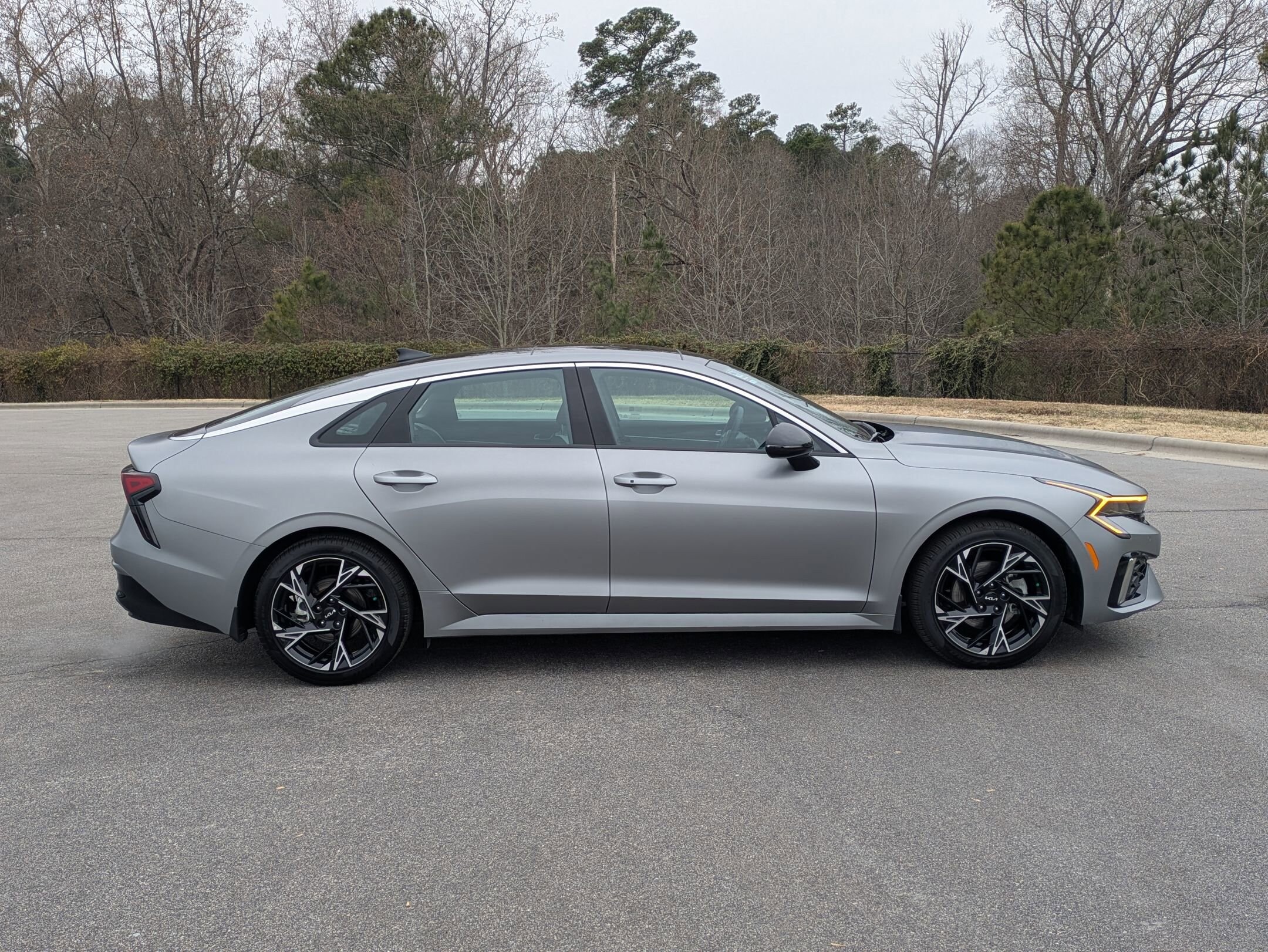 Clean Carfax. Carfax One-Owner. Steel Matte Gray 2025 Kia K5 GT-Line AWD 8-Speed Automatic I4 1-Owner, Clean Carfax, Back up camera, heated seats, panoramic sunroof, very low miles, all wheel drive, smart key w push button start, lane departure alert w steering assist, blind spot monitor w rear cross traffic alert, Apple CarPlay & Android Auto, front & rear parking sensors, highway driving assist, smart cruise control w stop & go, sport heated leather steering wheel, GT Line premium package w Bose premium audio, subwoofer in external amplifier, active sound design, LED interior lighting. We are more than just a dealership here at Jaguar Land Rover Raleigh. We are part of the Leith Automotive Group, and that means that we have access to almost 2,000 pre-owned vehicles. Our location puts us in the perfect place to help people of Raleigh, Durham, Chapel Hill, Apex, and all the surrounding areas with all their automotive needs. If you would like to request additional information about a specific vehicle, schedule a test drive or inquire about leasing or financing, please feel free to give us a call, send us an email or stop by and see us in person. Recent Arrival! Recent Arrival! Odometer is 1942 miles below market average! 24/33 City/Highway MPG.