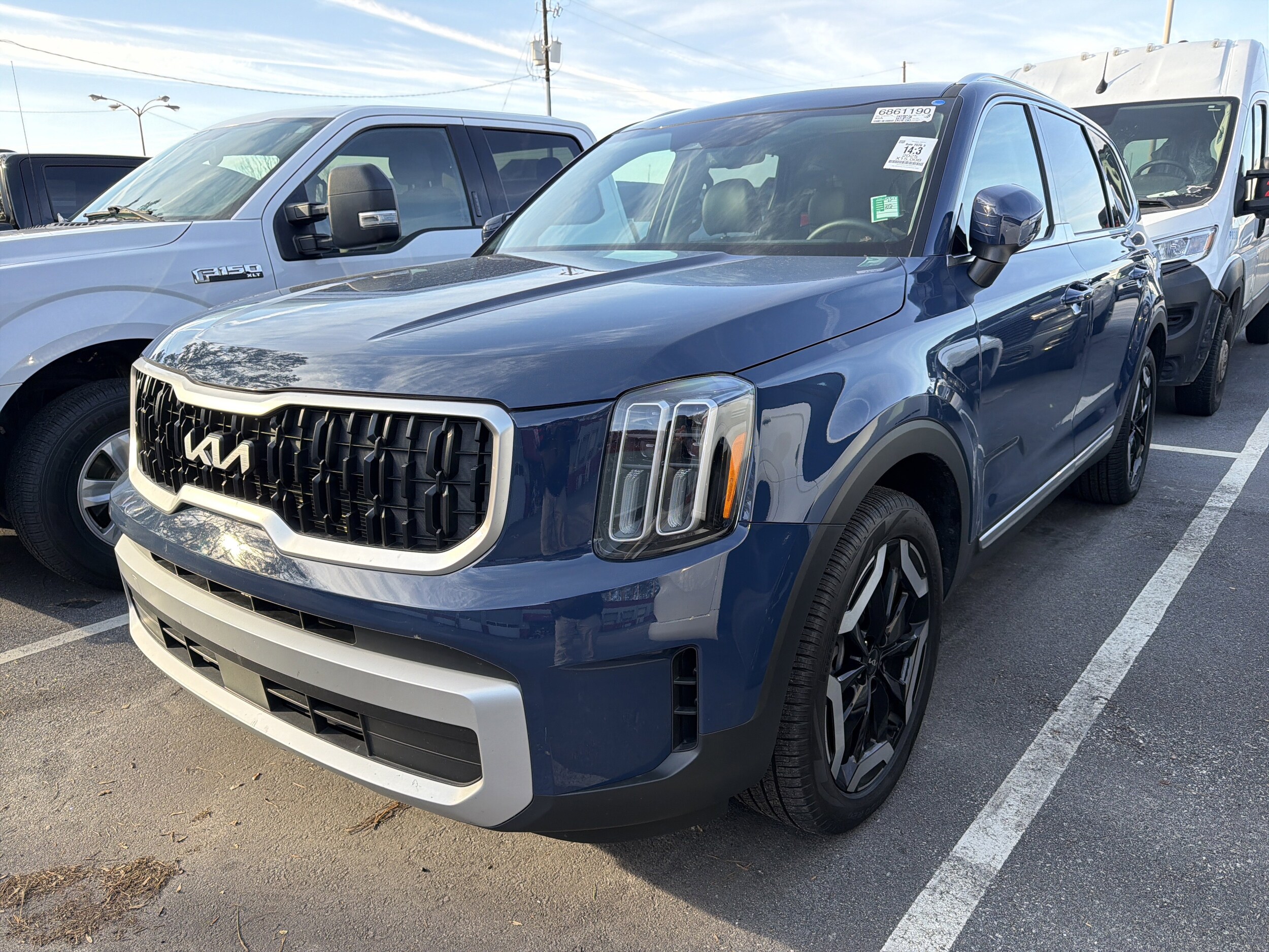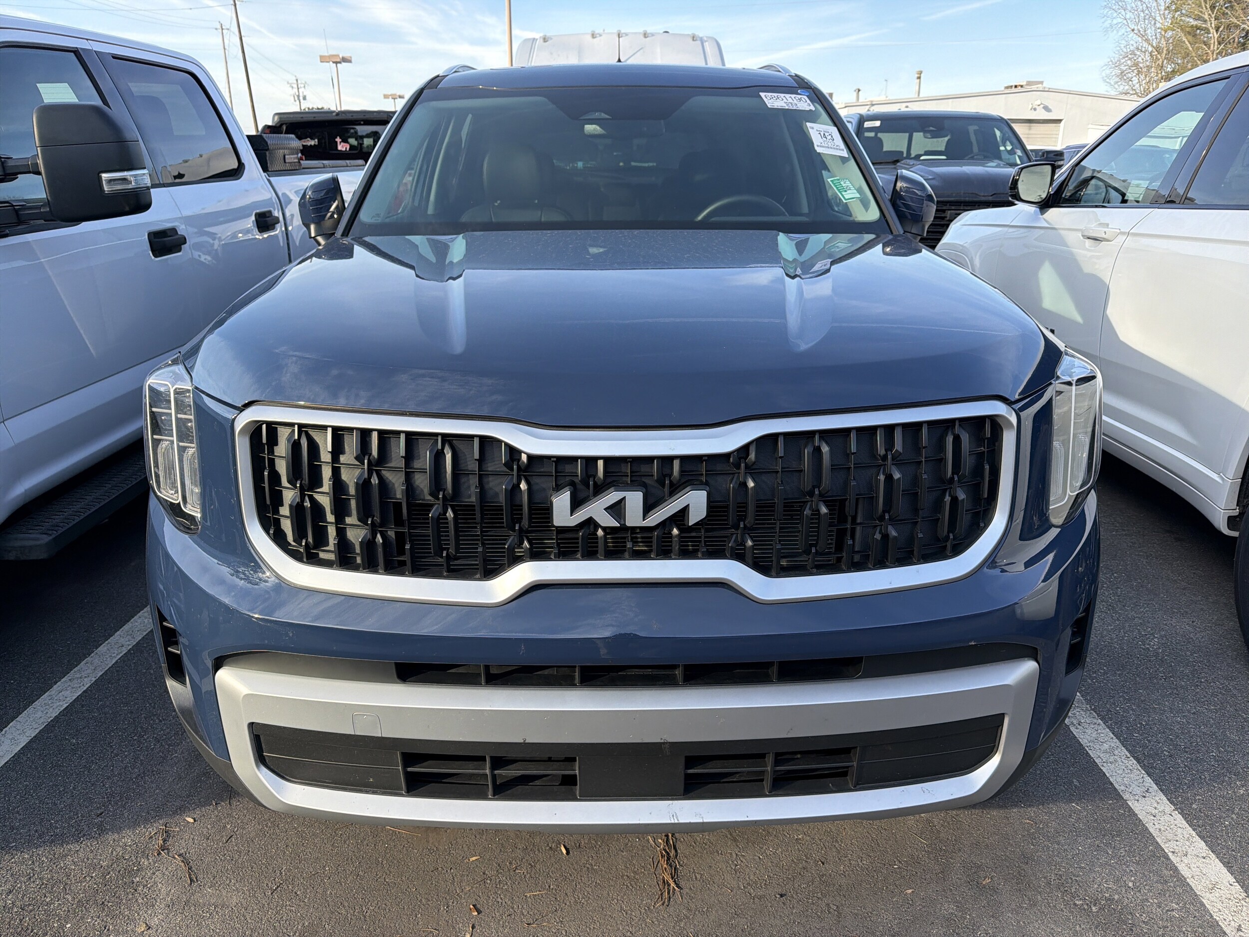 Recent Arrival! 2025 Kia Telluride EX finished in stunning Midnight Lake Blue, equipped with the EX Captains Chair Package for added comfort and versatility. This Telluride features 2nd-row captains chairs and a split-bench 3rd row, making it ideal for families and road trips alike. Inside, enjoy leather-trimmed seating, heated and ventilated front seats, dual-zone automatic climate control, and a power moonroof that keeps the cabin open and bright. Stay connected with Navigation, Apple CarPlay & Android Auto, SiriusXM, and rear audio controls, while convenience features like a power liftgate, remote keyless entry, and auto-dimming rearview mirror make everyday driving effortless. Safety and confidence come standard with Electronic Stability Control, Brake Assist, Rear Parking Camera, Auto High-Beam Headlights, and Kia's 911 Connect emergency communication system. Finished off with aggressive 20-inch black alloy wheels, this Telluride delivers bold style, premium comfort, and trusted performance in one impressive SUV.