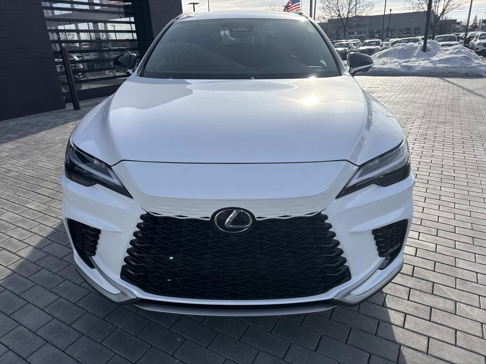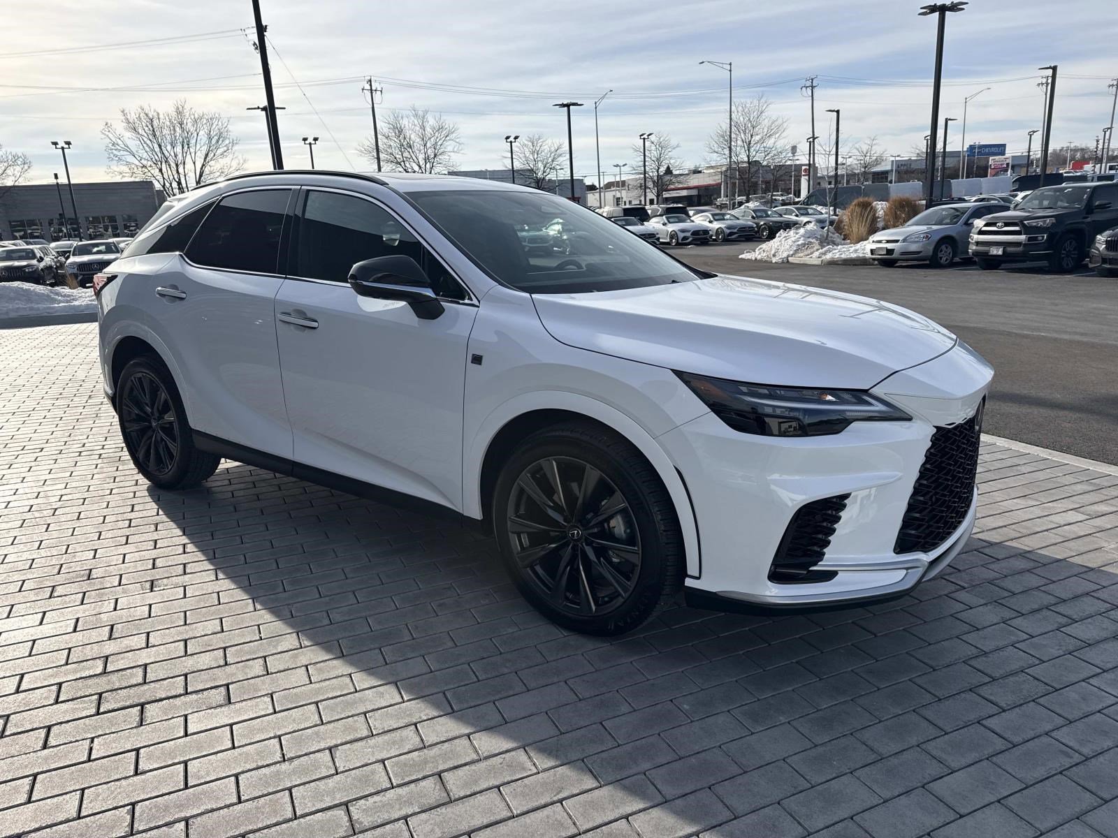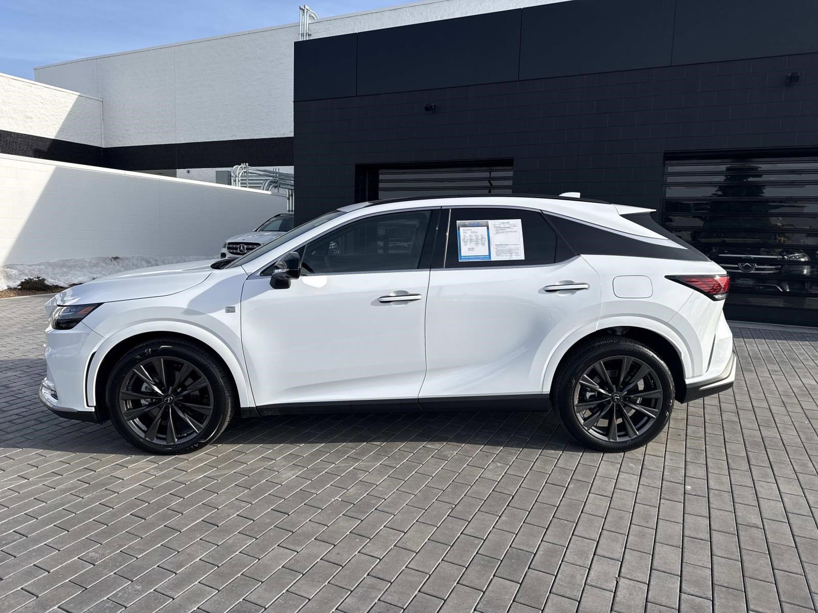 Ultra White 2025 Lexus RX 350 F Sport AWD 8-Speed Automatic 2.4L I4 Turbo AWD, Black w/Black Open Pore w/NuLuxe Seat Trim, 12 Speakers, All-Weather Floor Liners, Alloy wheels, AM/FM radio: SiriusXM, Auto-dimming door mirrors, Black Emblem Overlays, Bumpers: body-color, Cargo Net, Compass, Convenience Package, Digital Key & SmartAccess Card Key, Door Edge Film by 3M, Electrochromic Heated Outside Rearview Mirror, F Sport Design Package, Heated door mirrors, Heated steering wheel, Illuminated entry, Lane Change Assist w/Lane Keeping Assist System, Leather Shift Knob, Leather steering wheel, Navigation System, Passenger door bin, Power Liftgate, Power moonroof, Power passenger seat, Power Rear Door w/Kick Sensor, Premium Paint, Radio: Lexus Interface w/14" HD Touchscreen Display, Split folding rear seat, Spoiler, Turn signal indicator mirrors, Ventilated front seats.